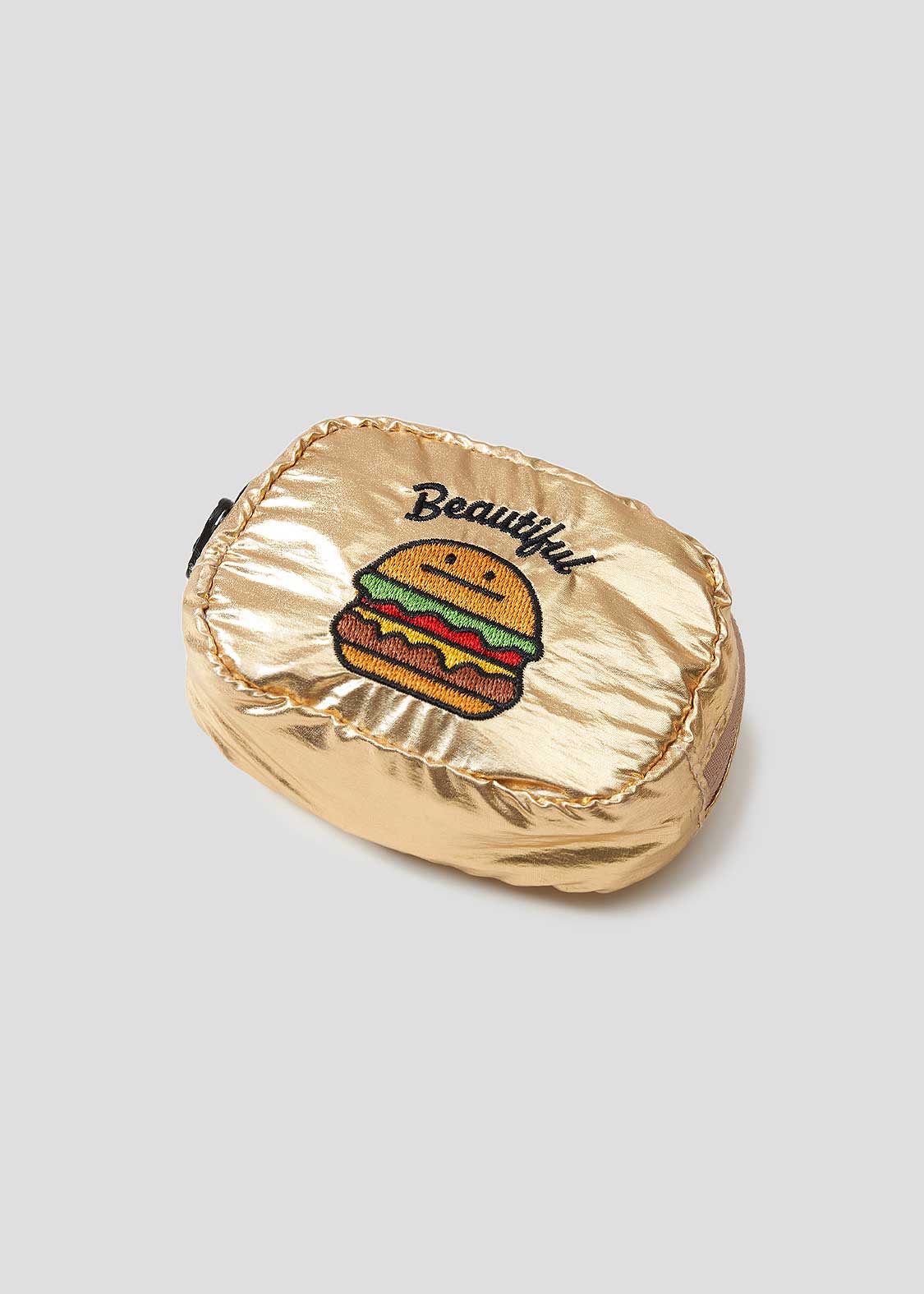 普段暗い色のカバンを使っているのでアクセントになっていいなと思い買ったのですが、擦れて金色の生地がすぐに剥げてきてしまってそれがちょっと残念です。でもビューティフルバーガーが可愛いのでそのまま使います。