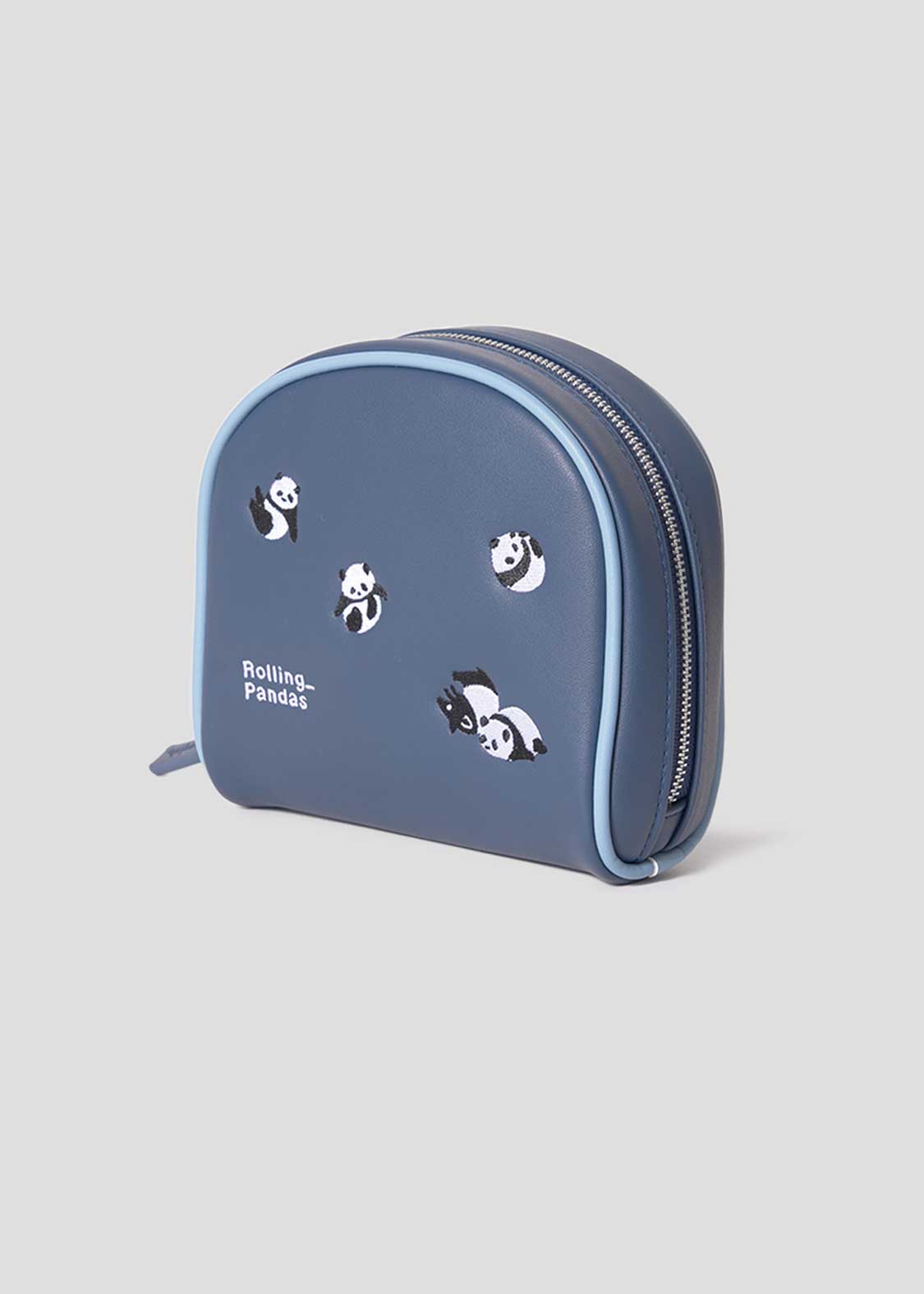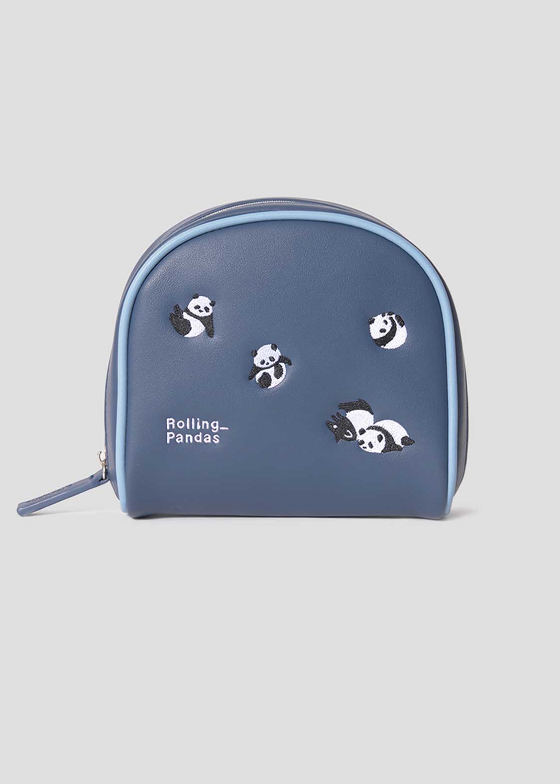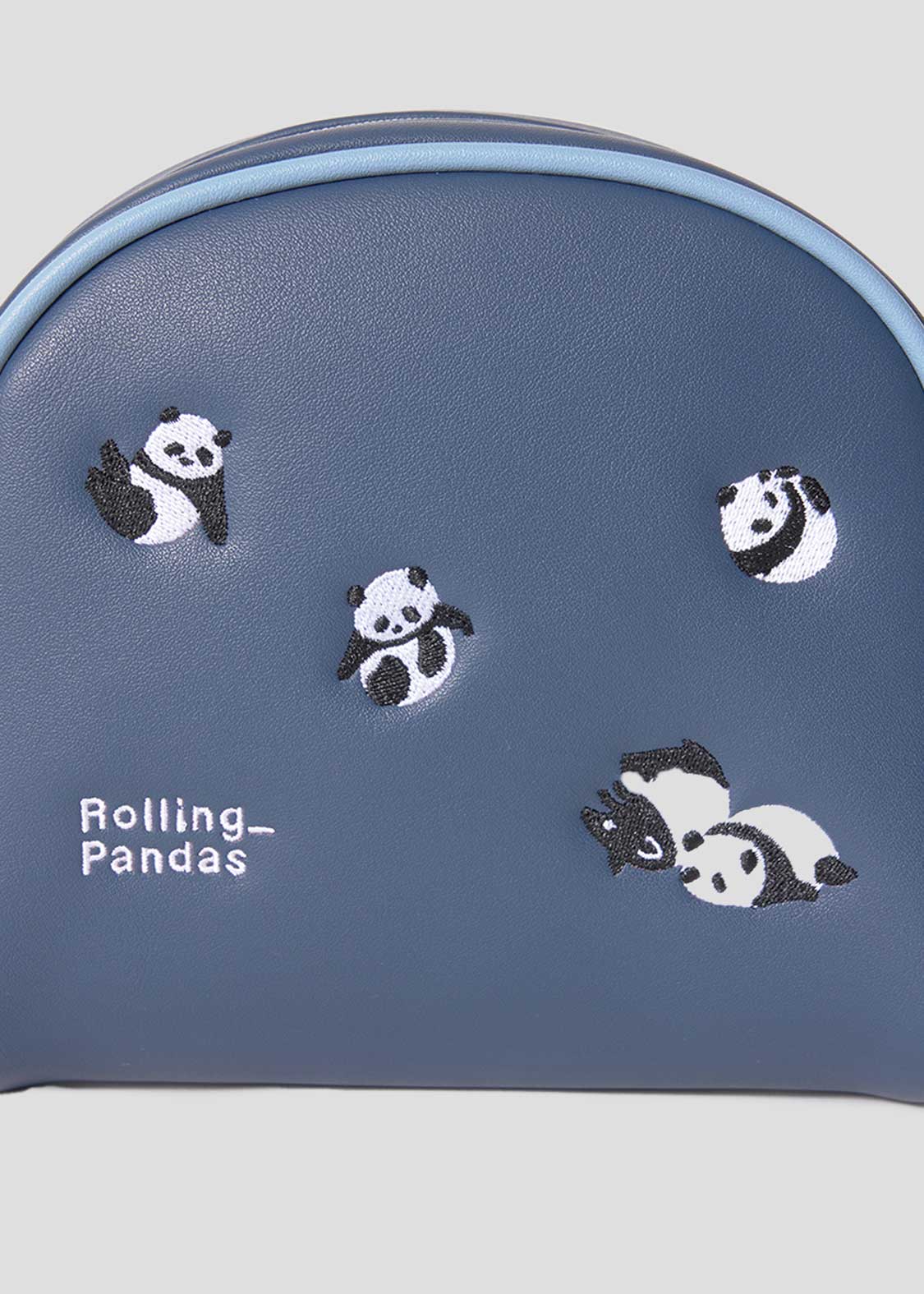 毬のように体を丸めた赤ちゃんパンダが、ころころと転がり落ちていく。その愛らしい姿に思わずほっこり気分になる、キュートなデザインです。