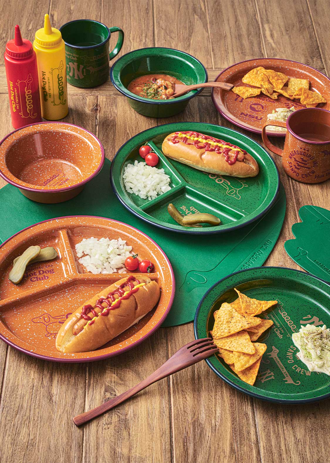 ナガスギルイヌがトレードマークとなったホットドッグスタンドのイラストを中心に、様々なグラフィックを盛り合わせ。にぎやかで楽しいデザインです。