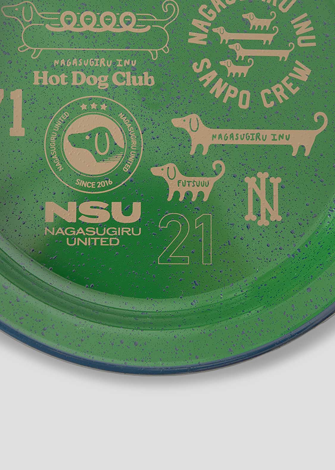 ナガスギルイヌがトレードマークとなったホットドッグスタンドのイラストを中心に、様々なグラフィックを盛り合わせ。にぎやかで楽しいデザインです。