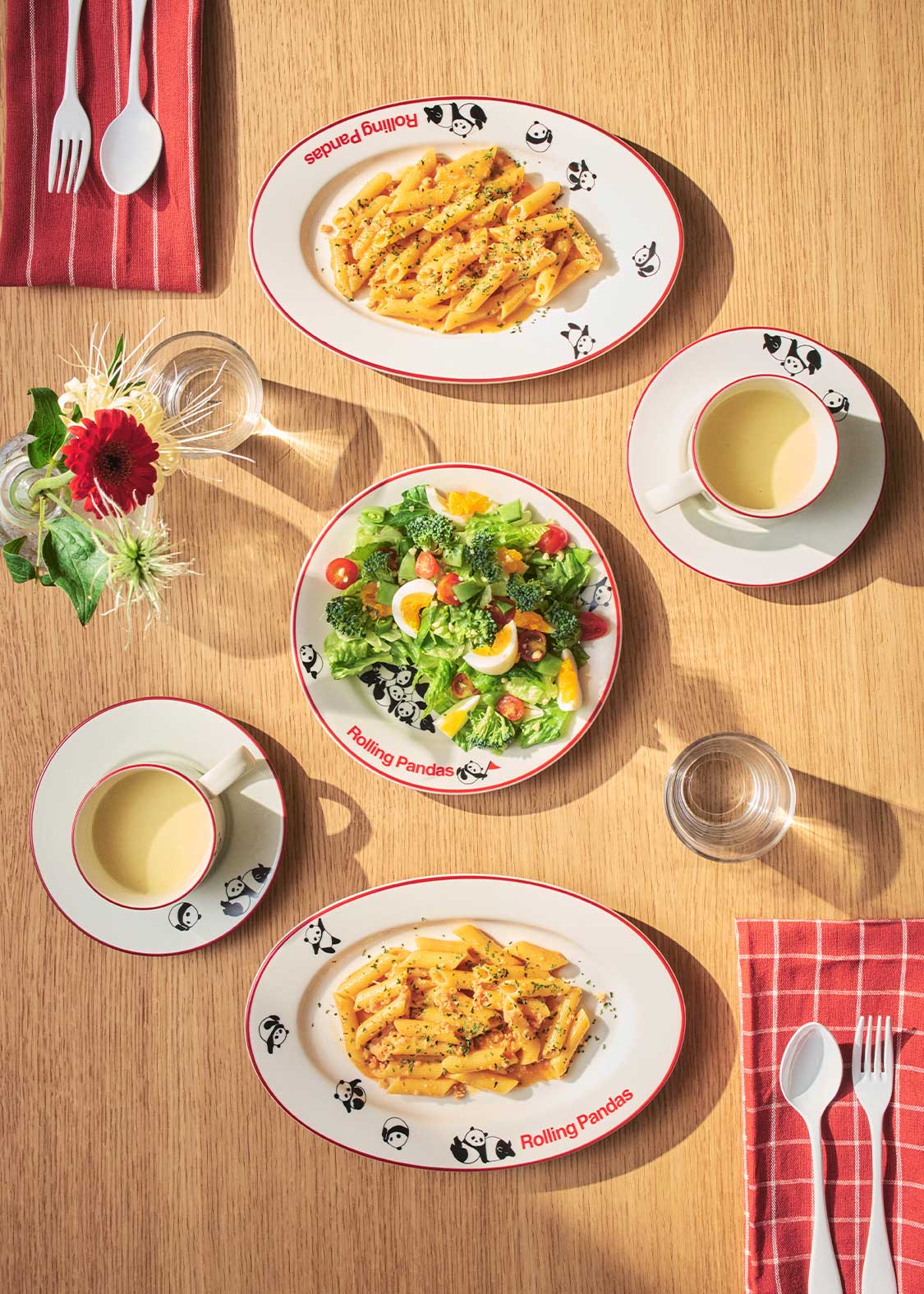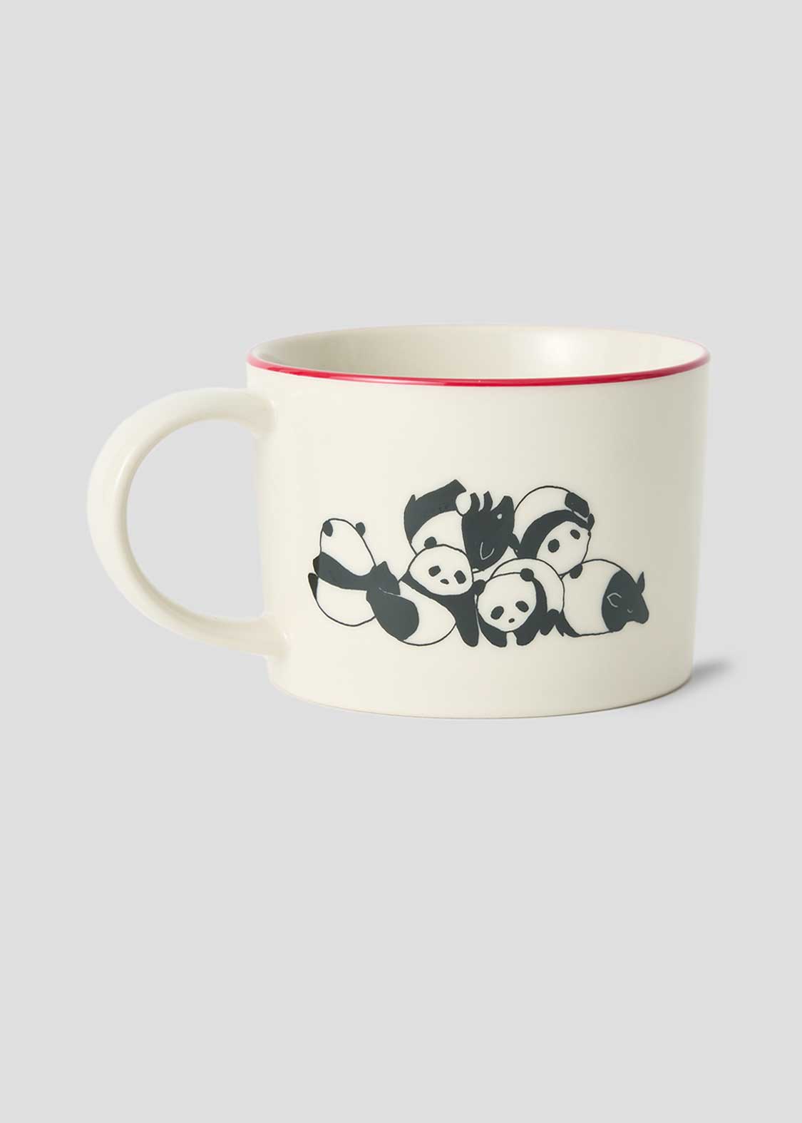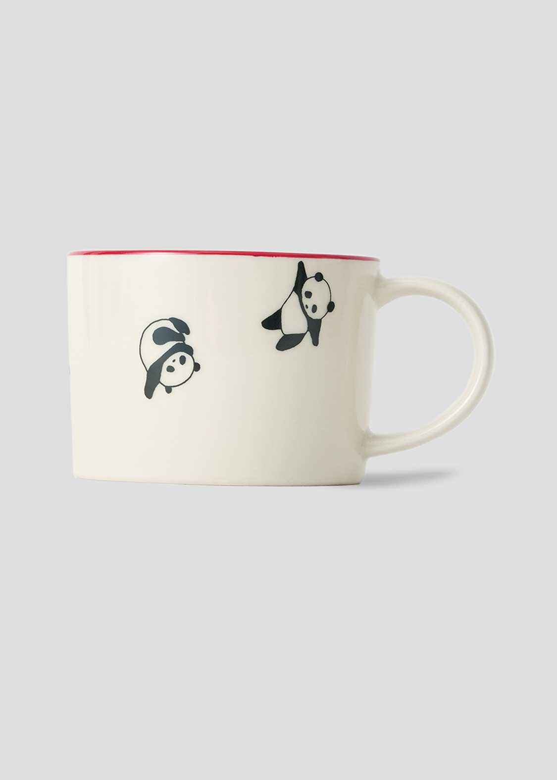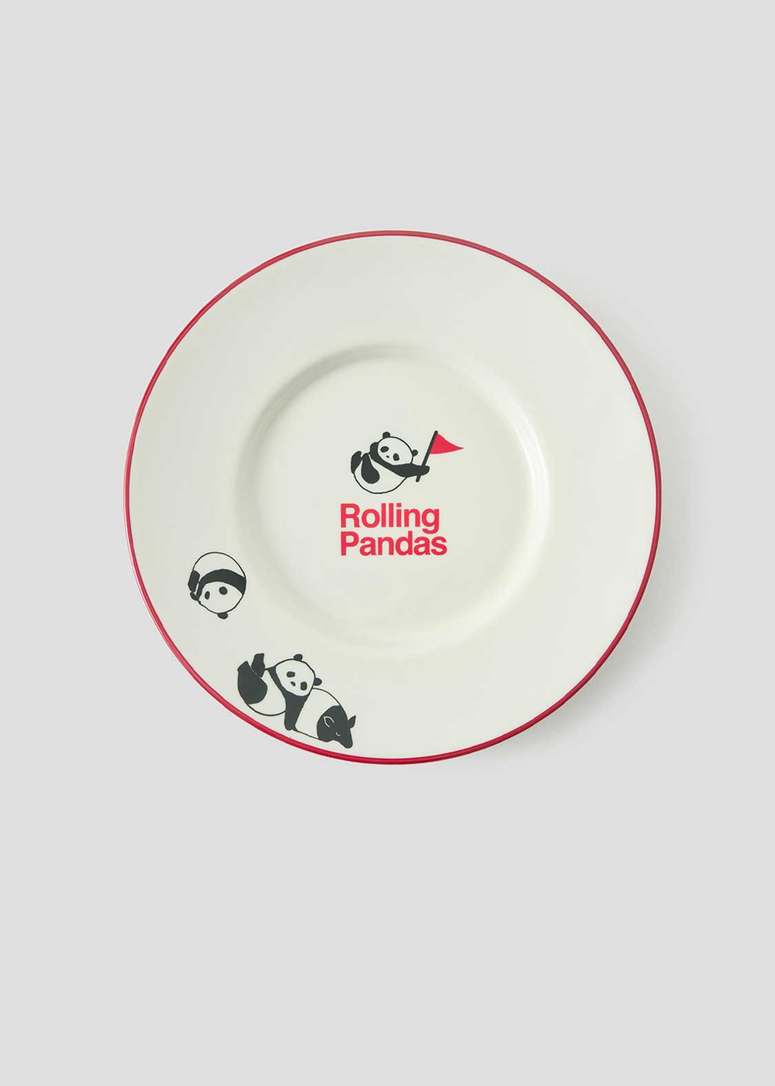 毬のように体を丸めた赤ちゃんパンダが、ころころと転がり落ちていく。その愛らしい姿に思わずほっこり気分になる、キュートなデザインです。