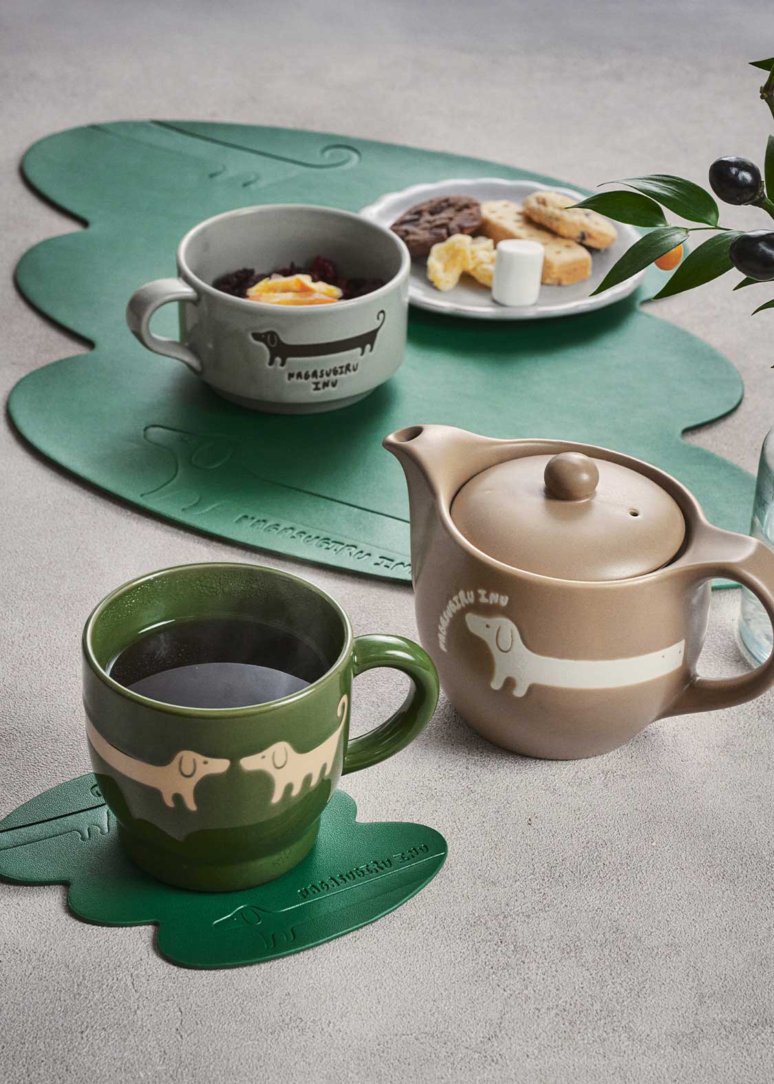 びよーんと伸びた長い胴、ロゴにもある通りまさに「ナガスギルイヌ」。決してダックスフントではなく、あくまで「ナガスギルイヌ」なのです。ユニークなコンセプト、思わず和んでしまう癒やしに溢れた作品です。