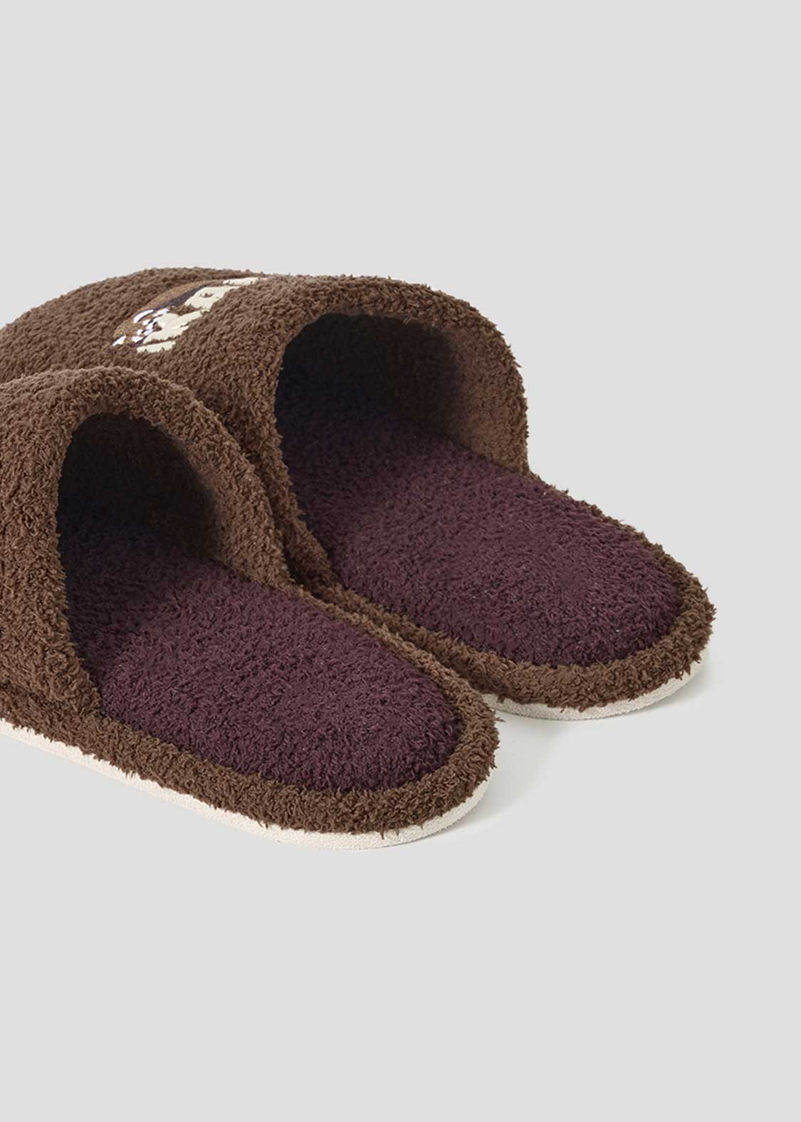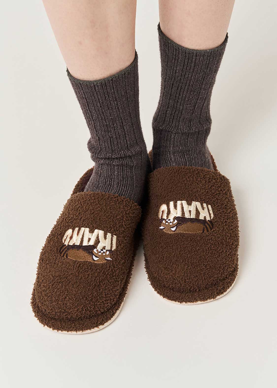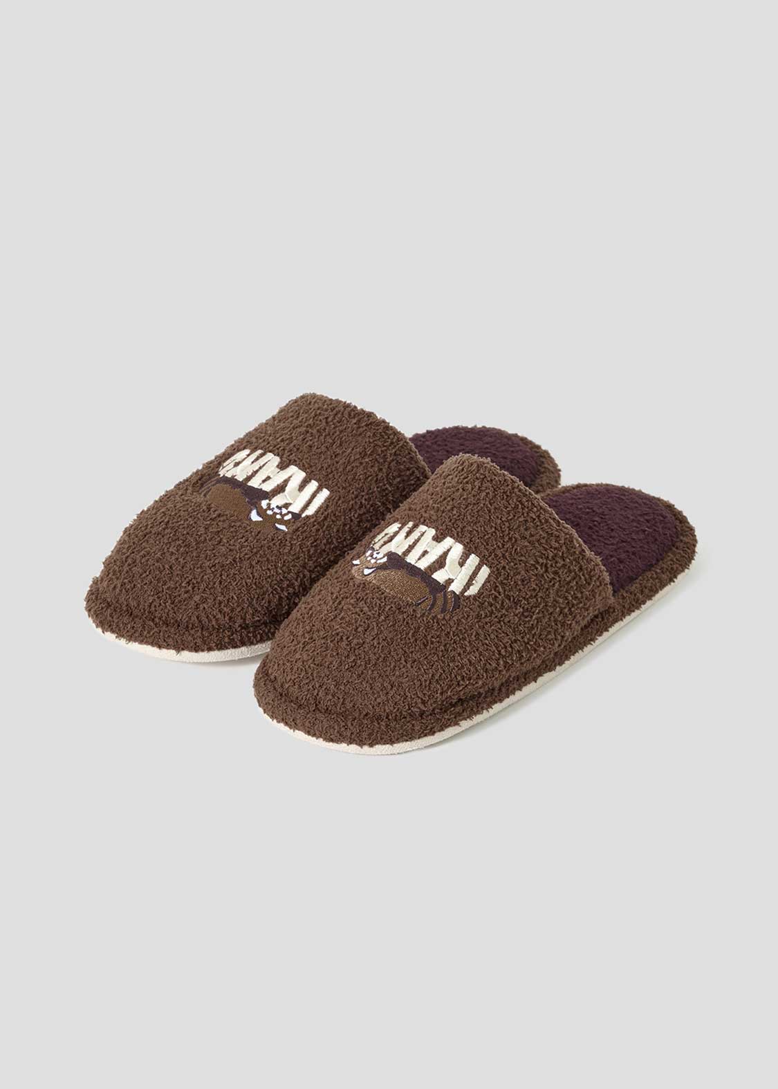 ・オリジナルグラフィックが刺繍されたふんわり素材のルームシューズ。