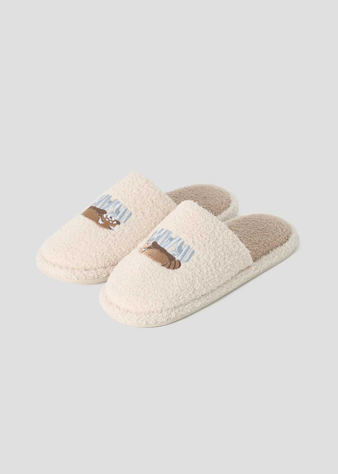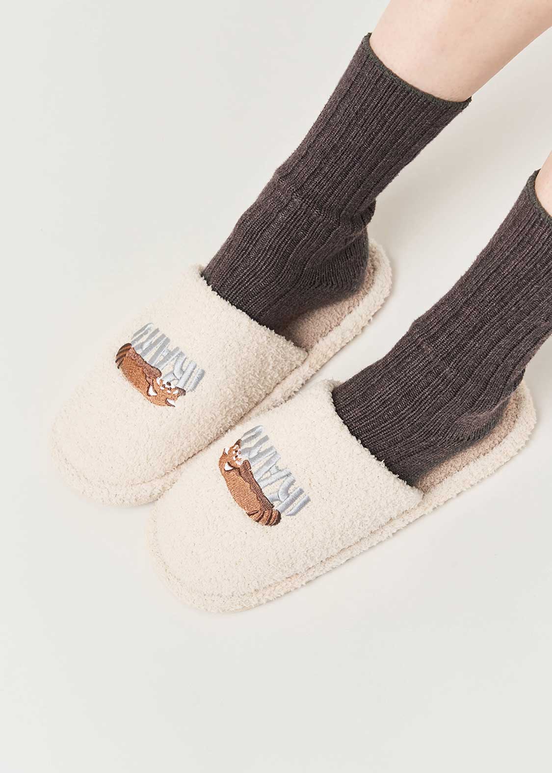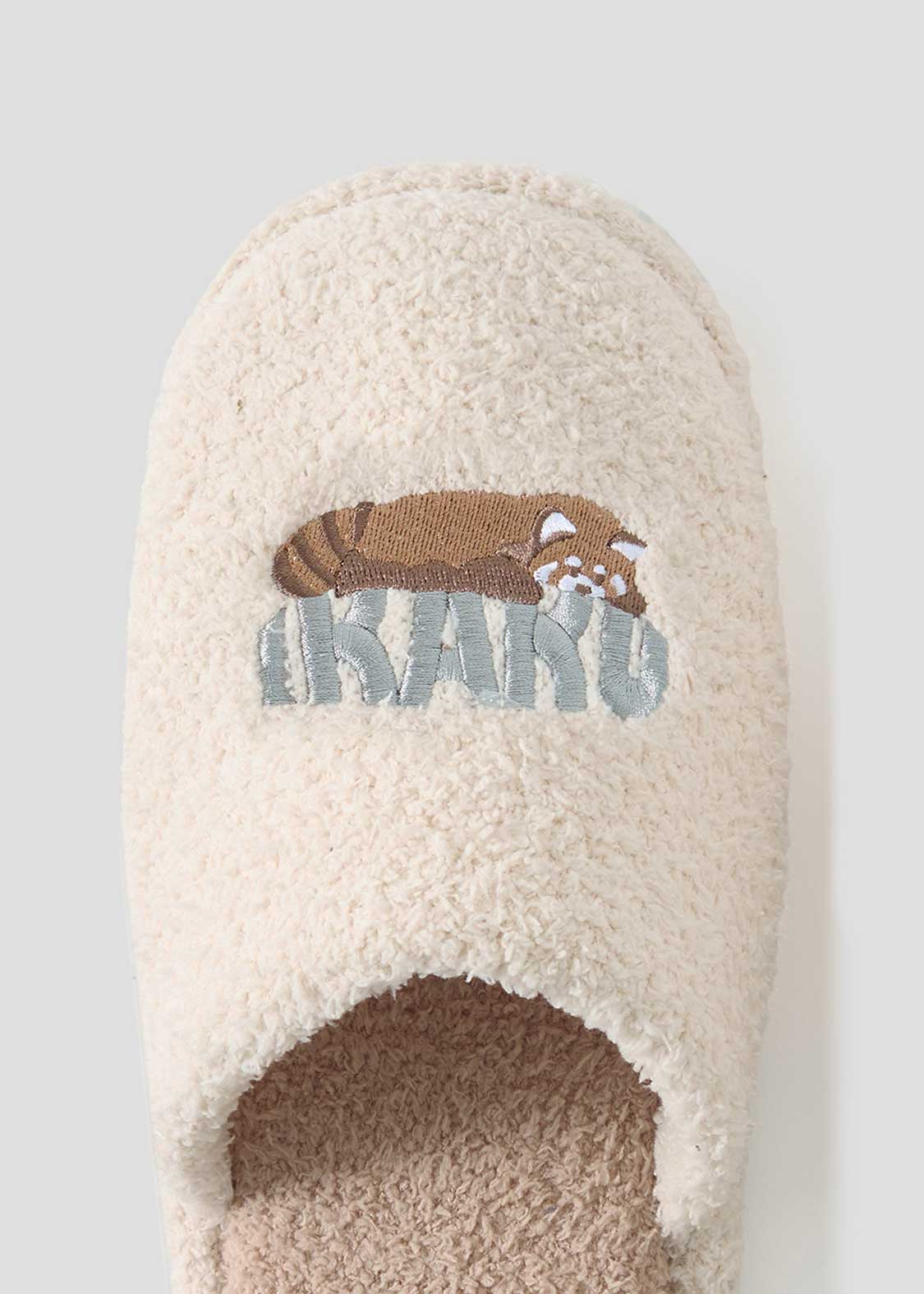 ・オリジナルグラフィックが刺繍されたふんわり素材のルームシューズ。