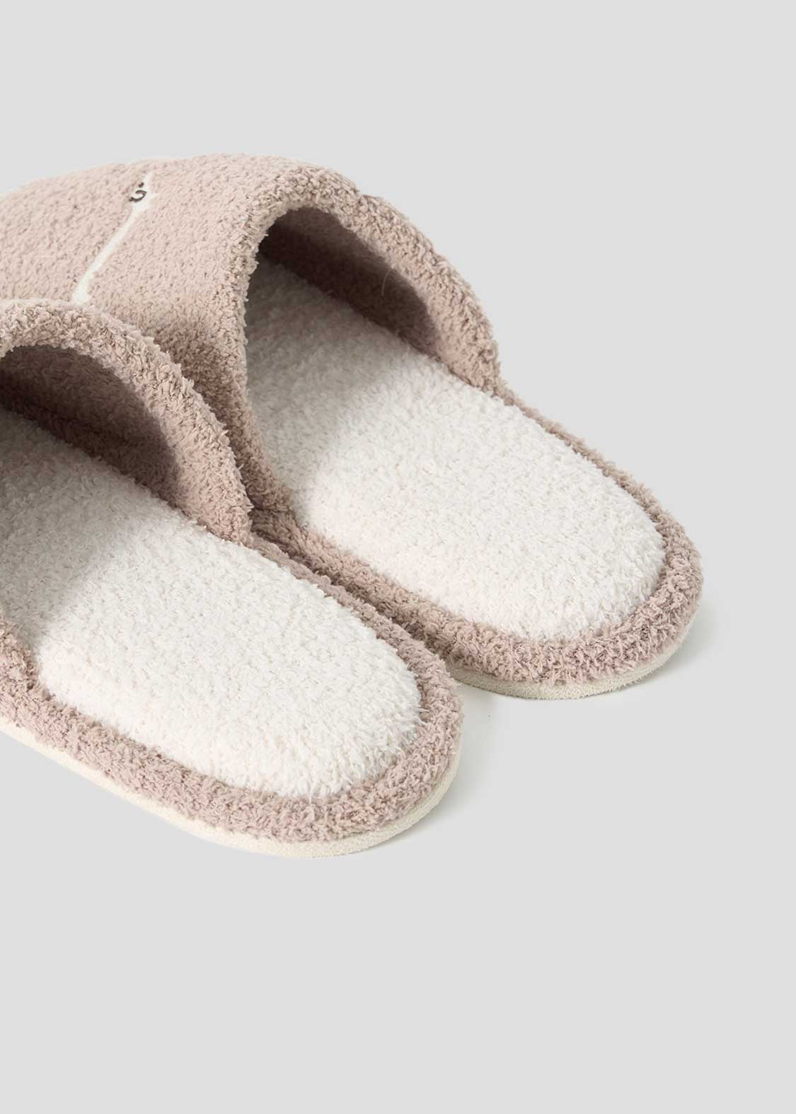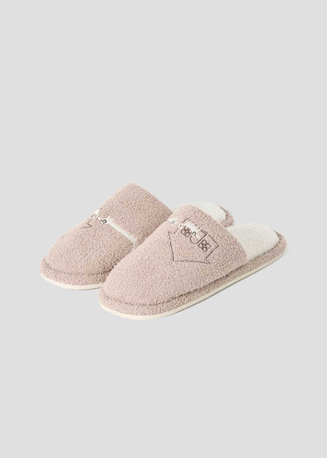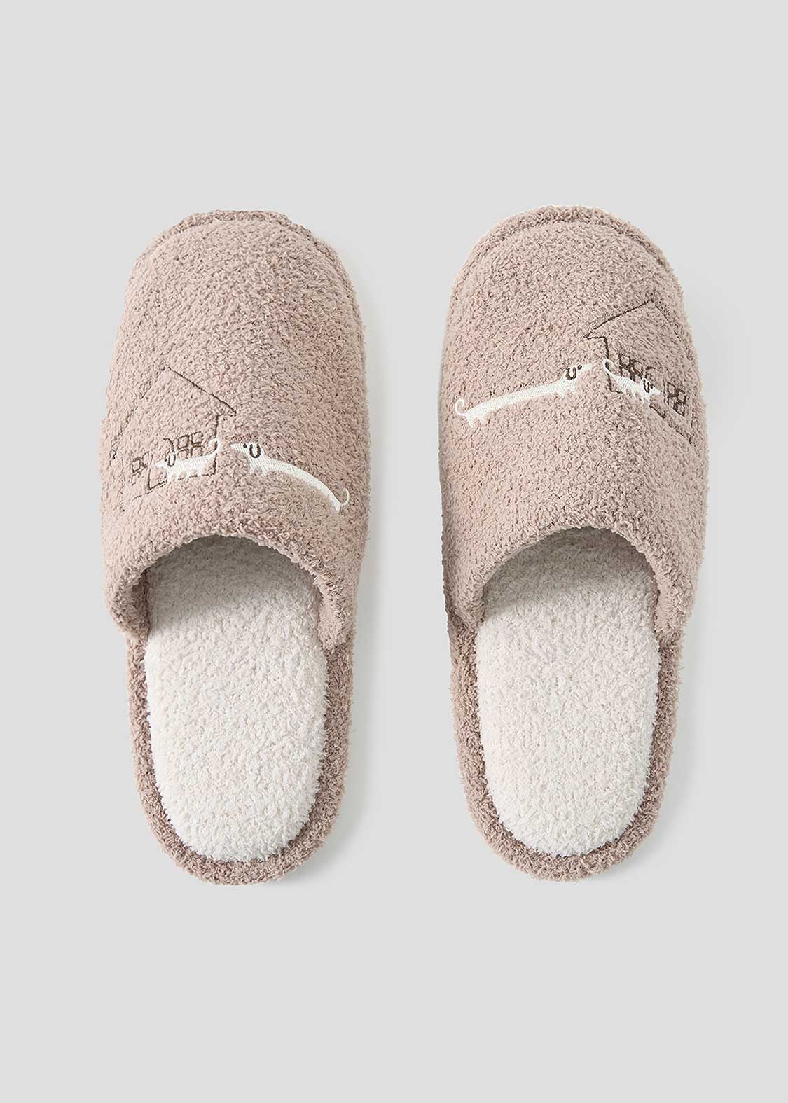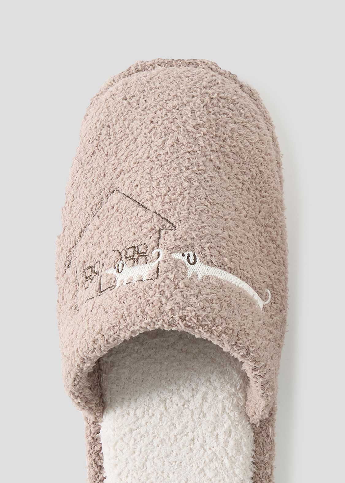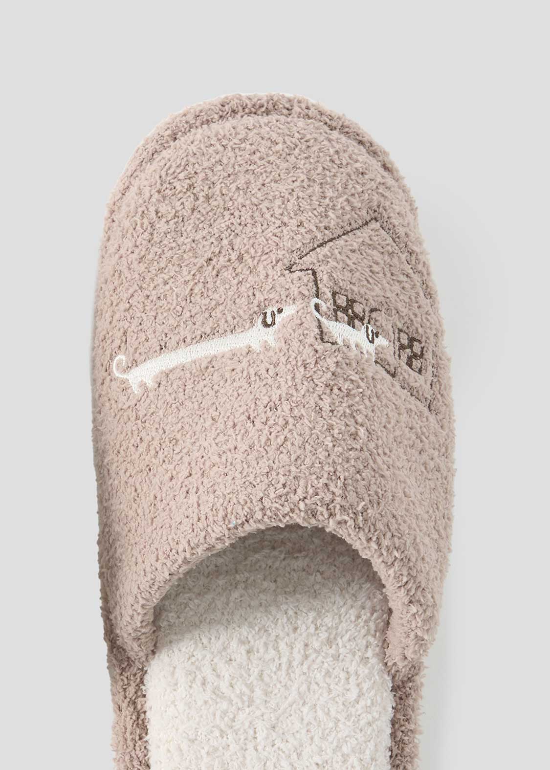 ・オリジナルグラフィックが刺繍されたふんわり素材のルームシューズ。
