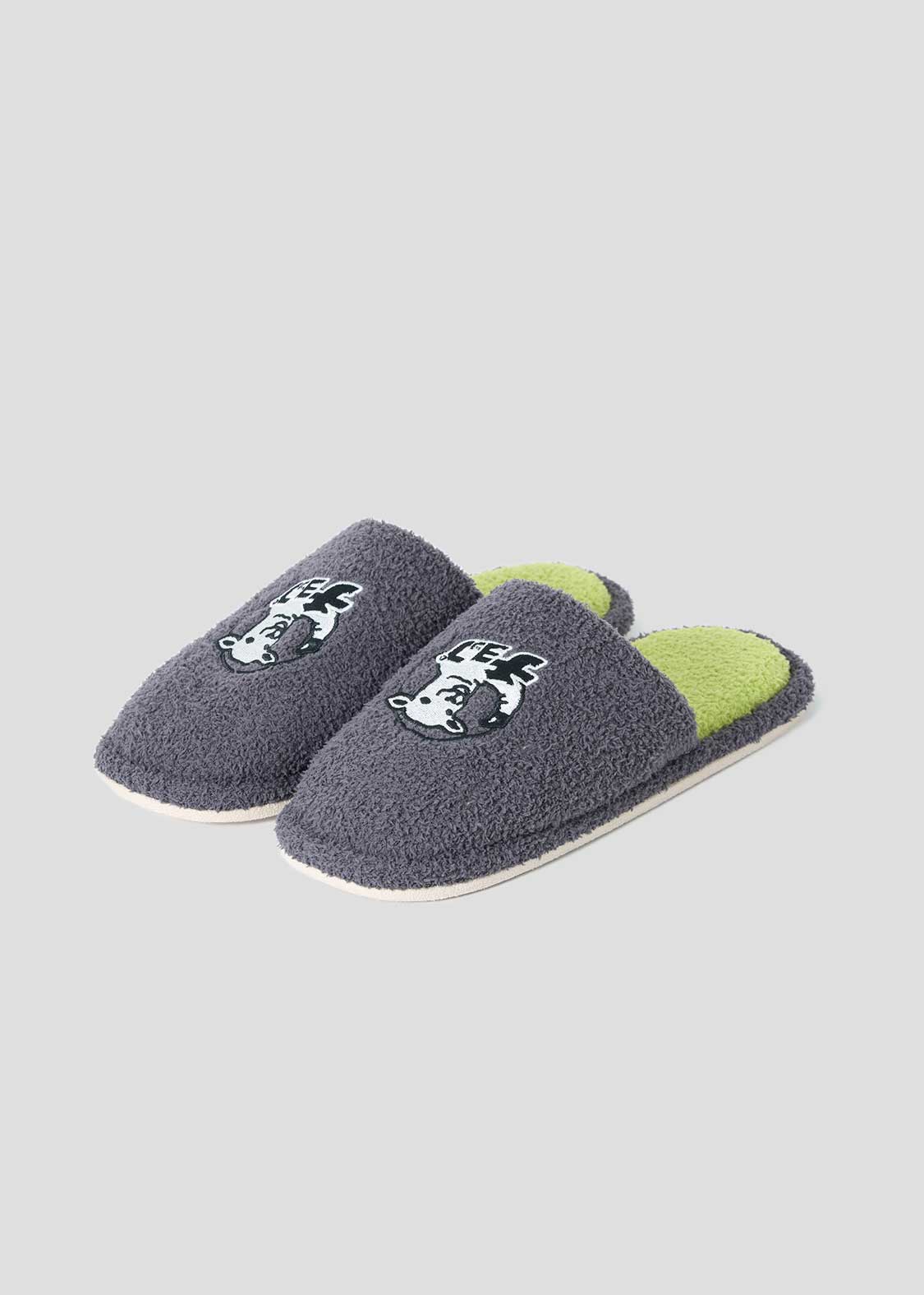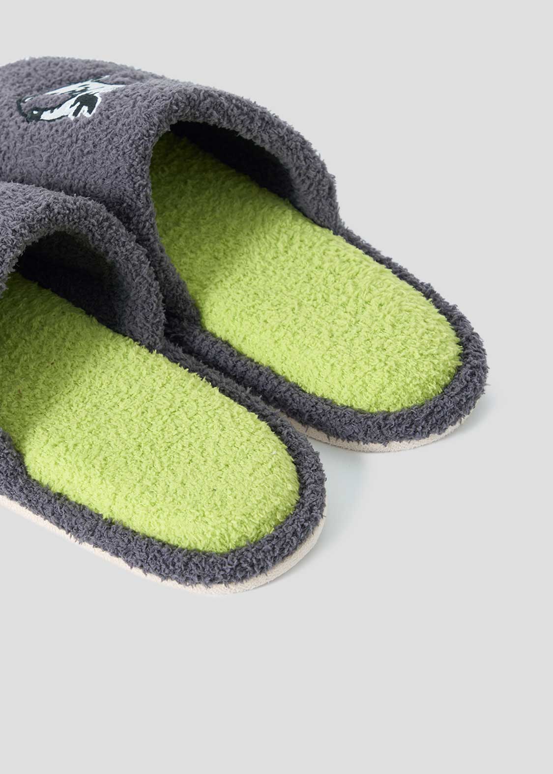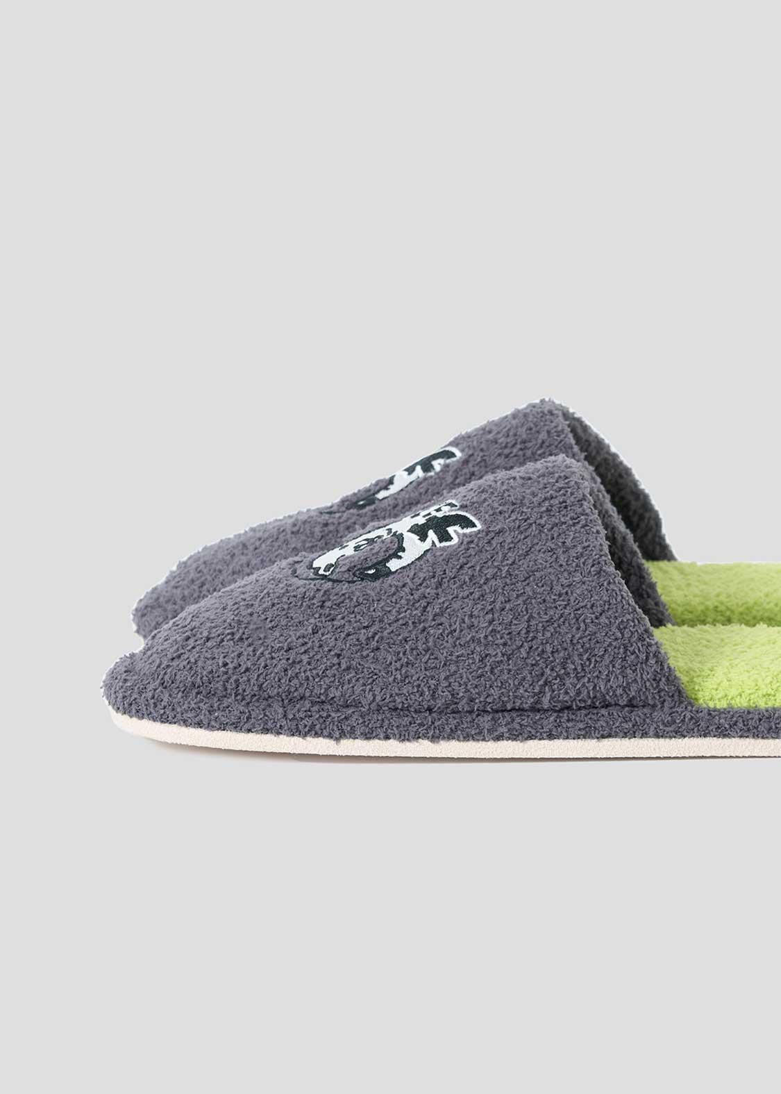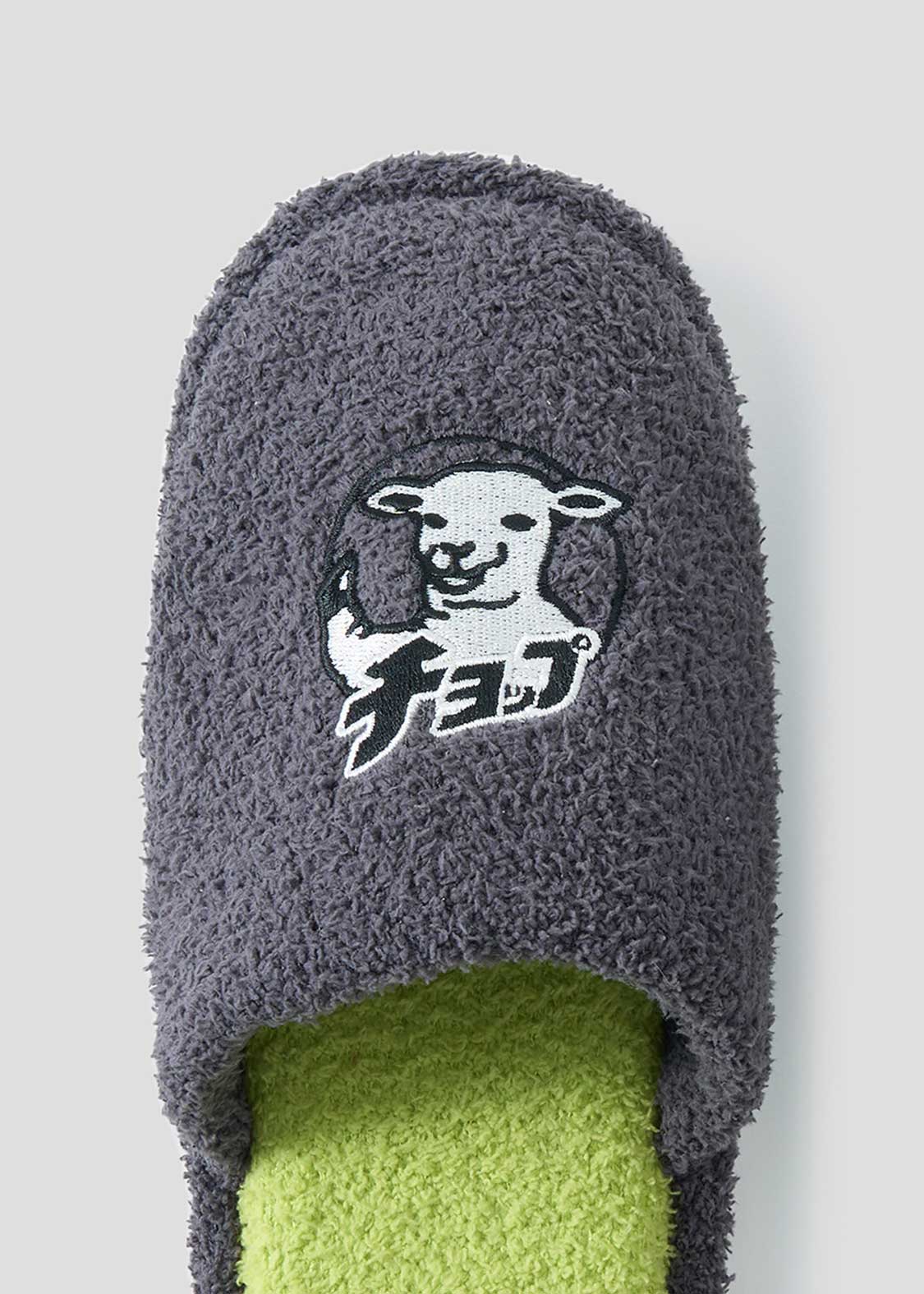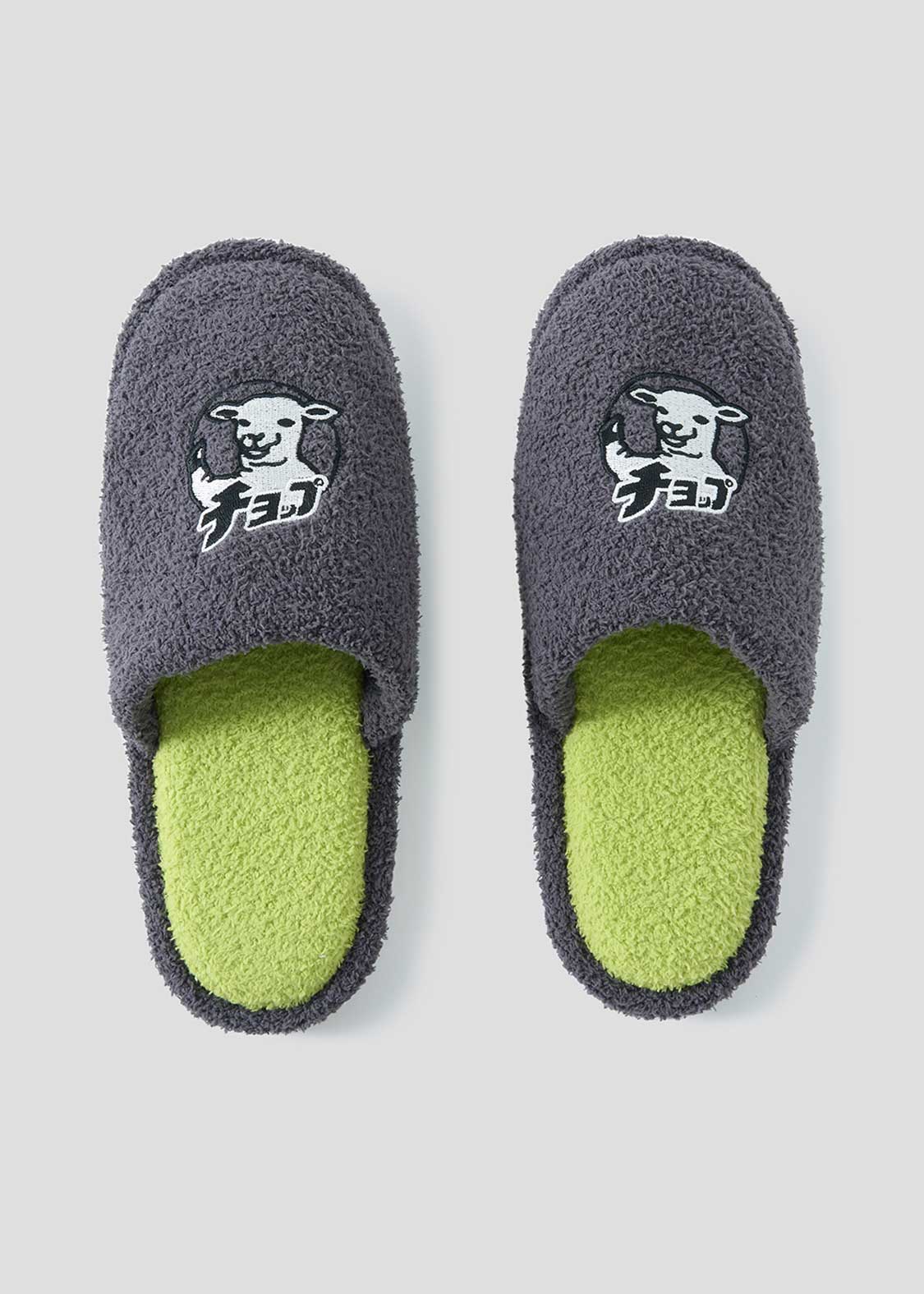・オリジナルグラフィックが刺繍されたふんわり素材のルームシューズ。