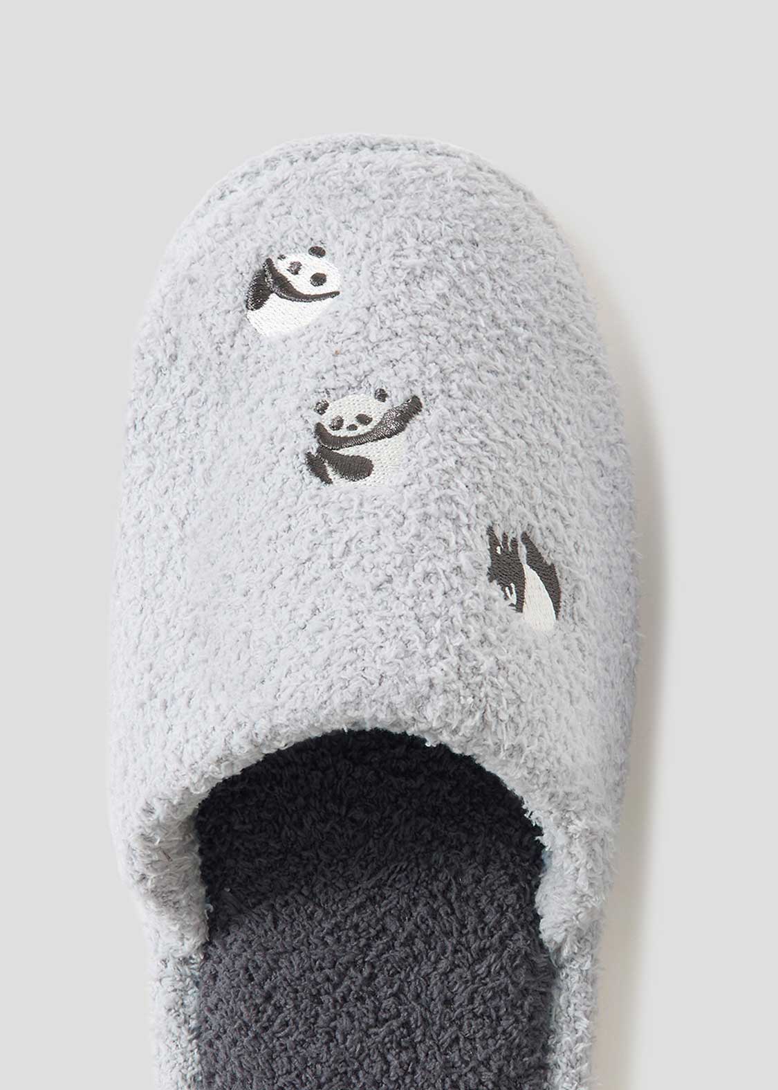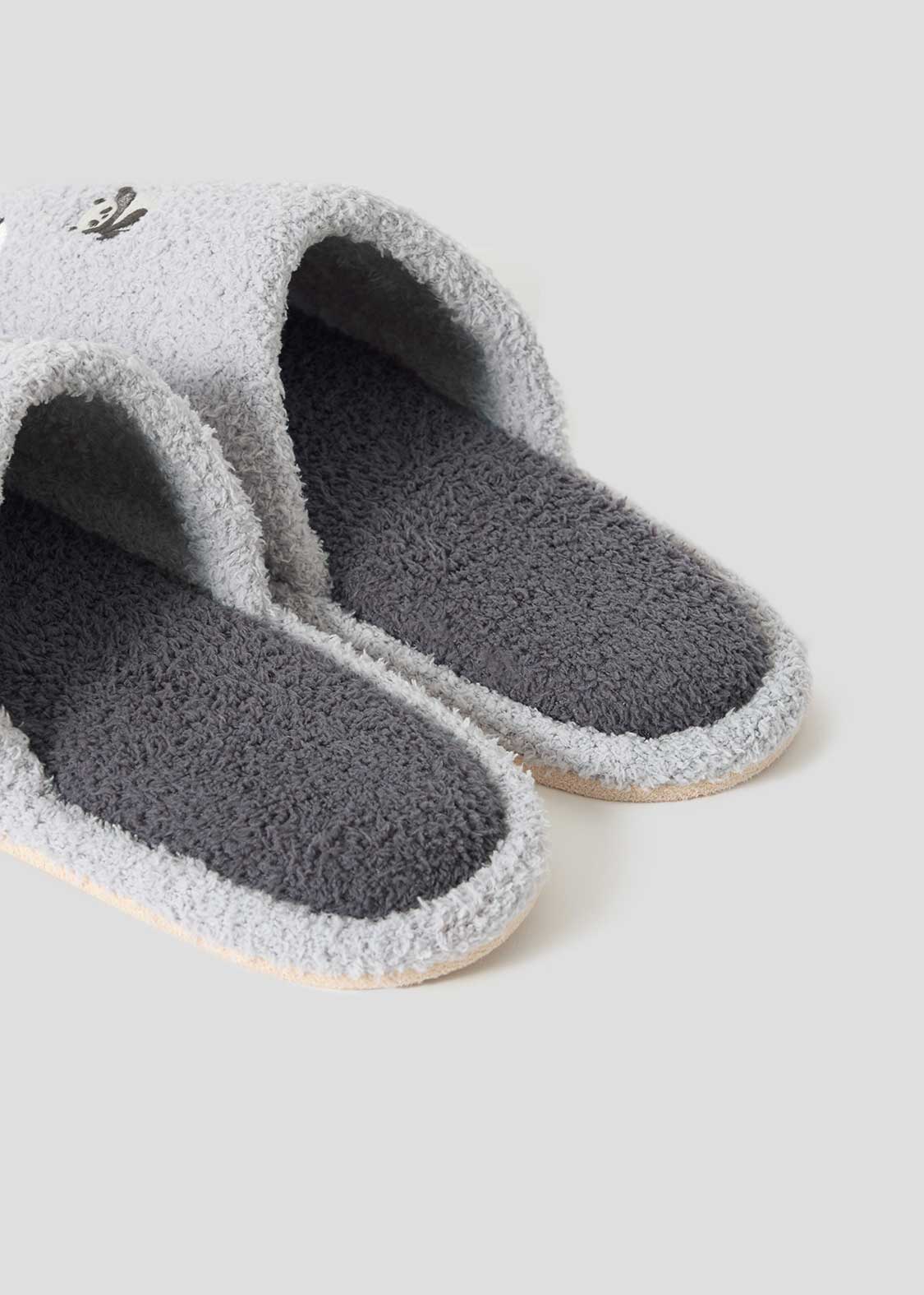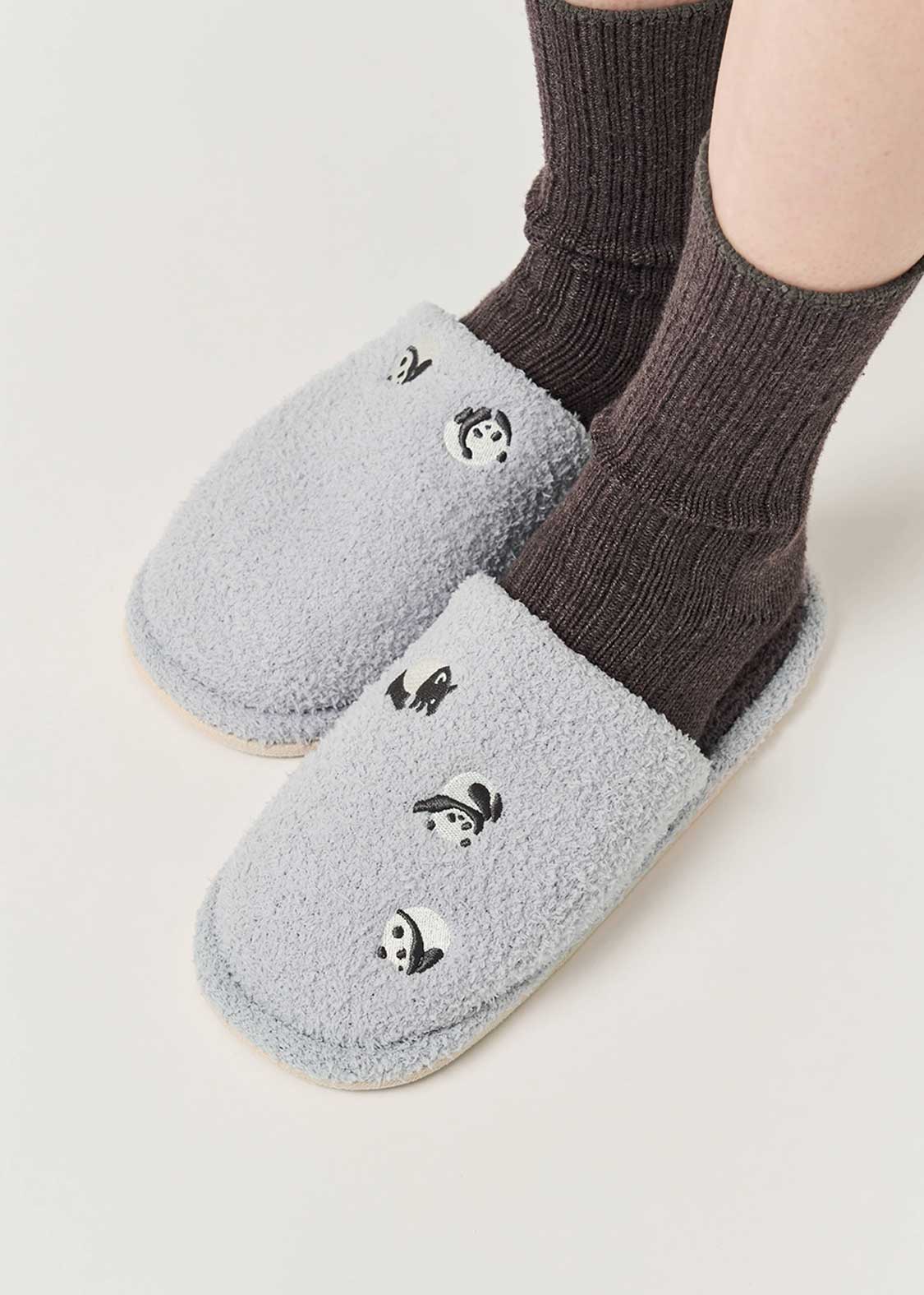 ・オリジナルグラフィックが刺繍されたふんわり素材のルームシューズ。