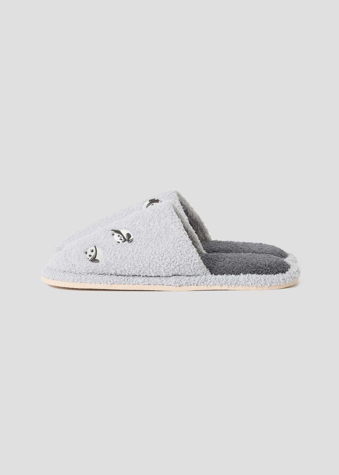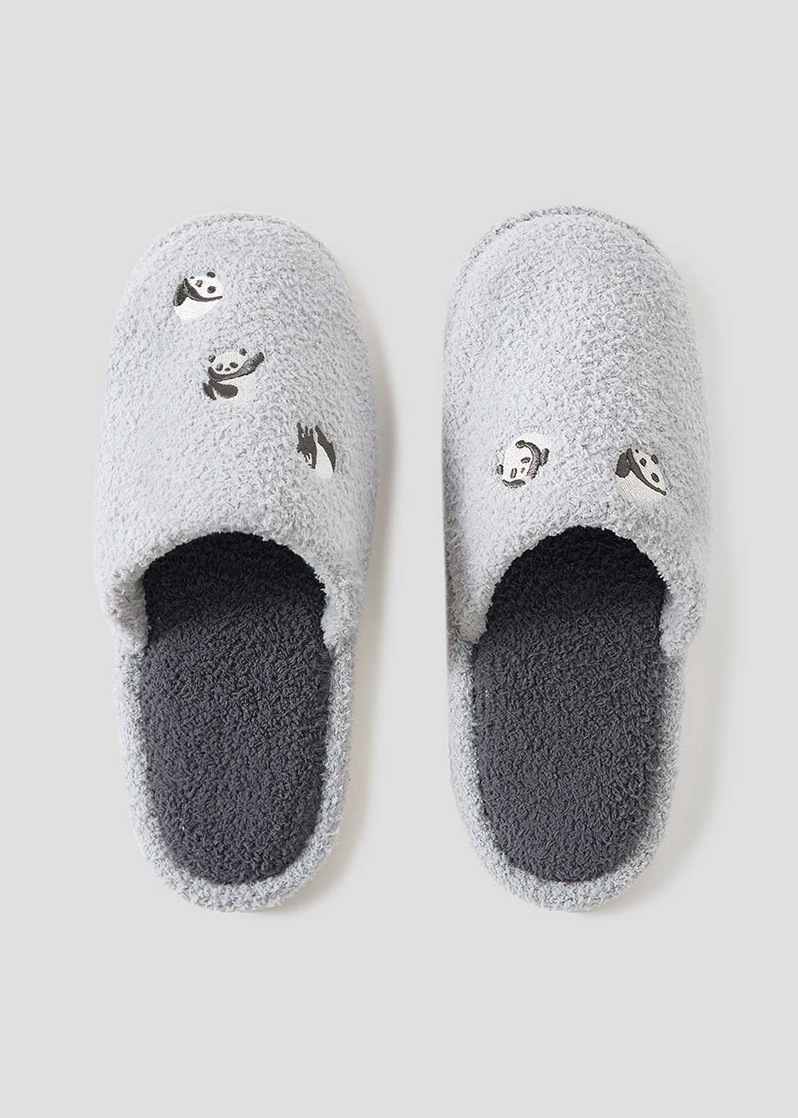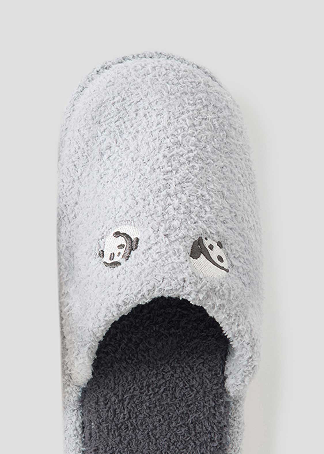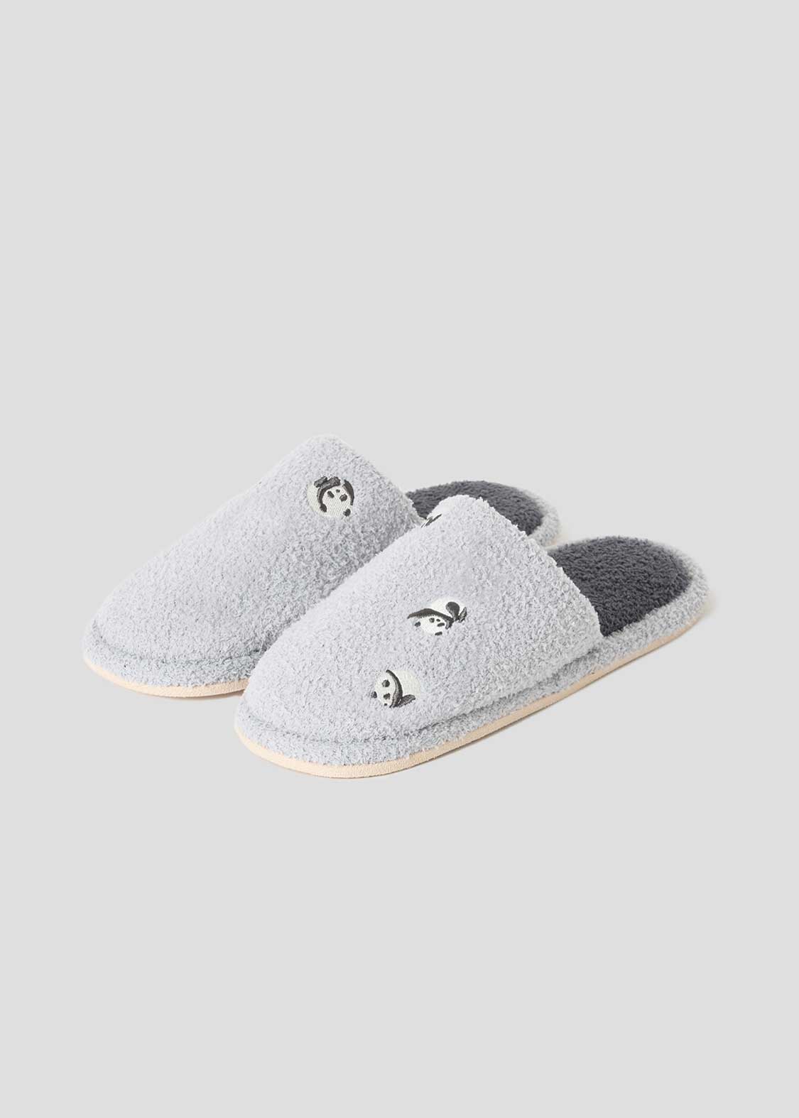 ・オリジナルグラフィックが刺繍されたふんわり素材のルームシューズ。