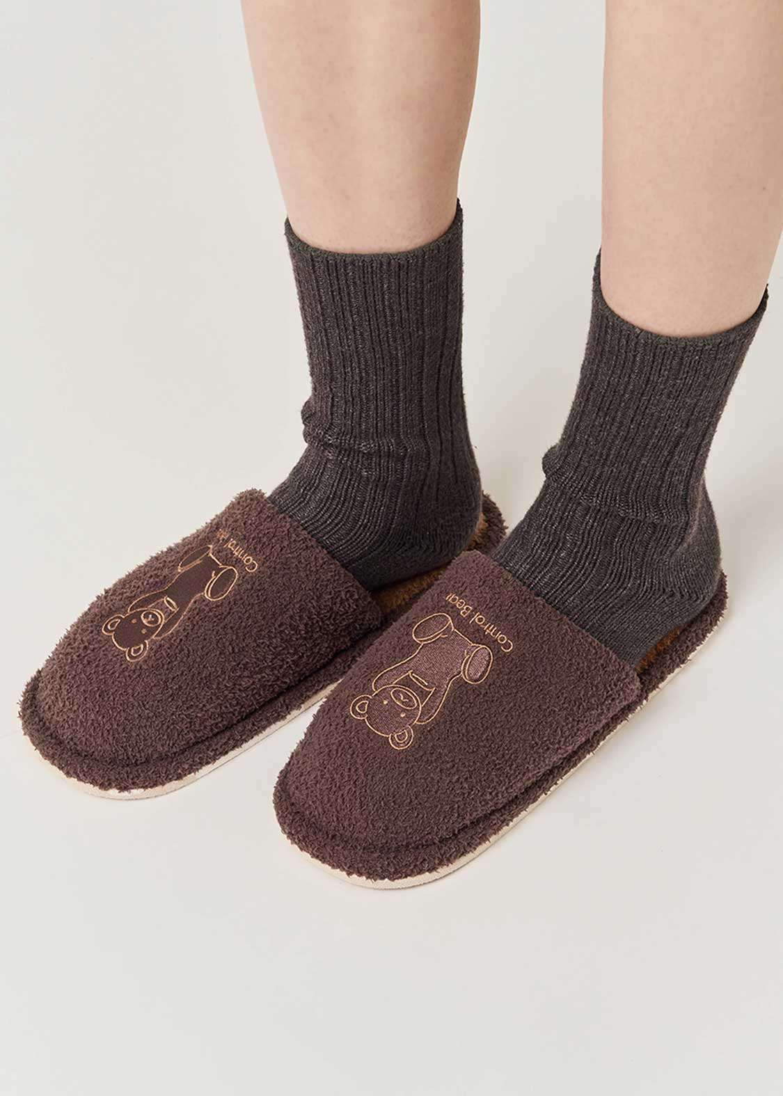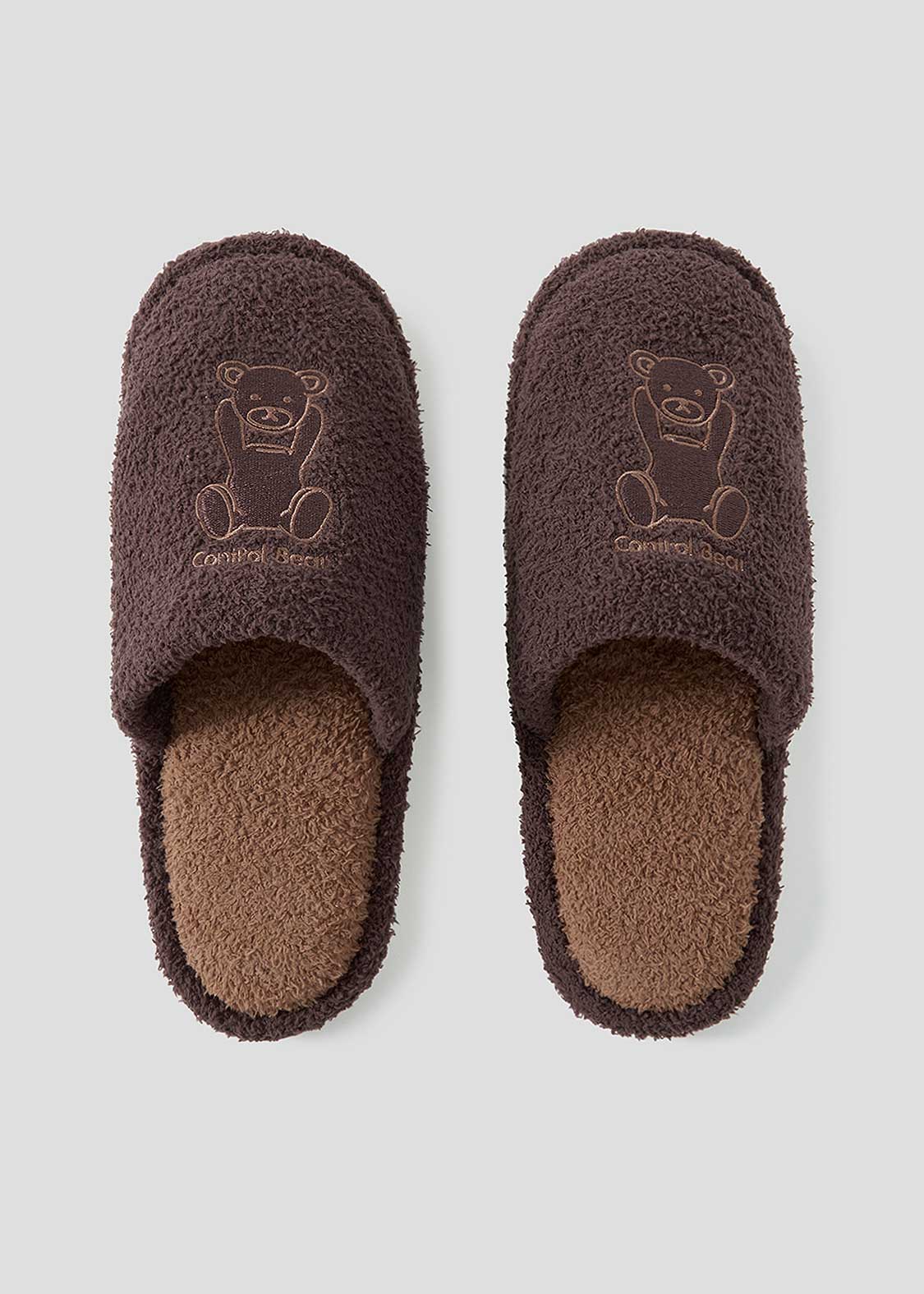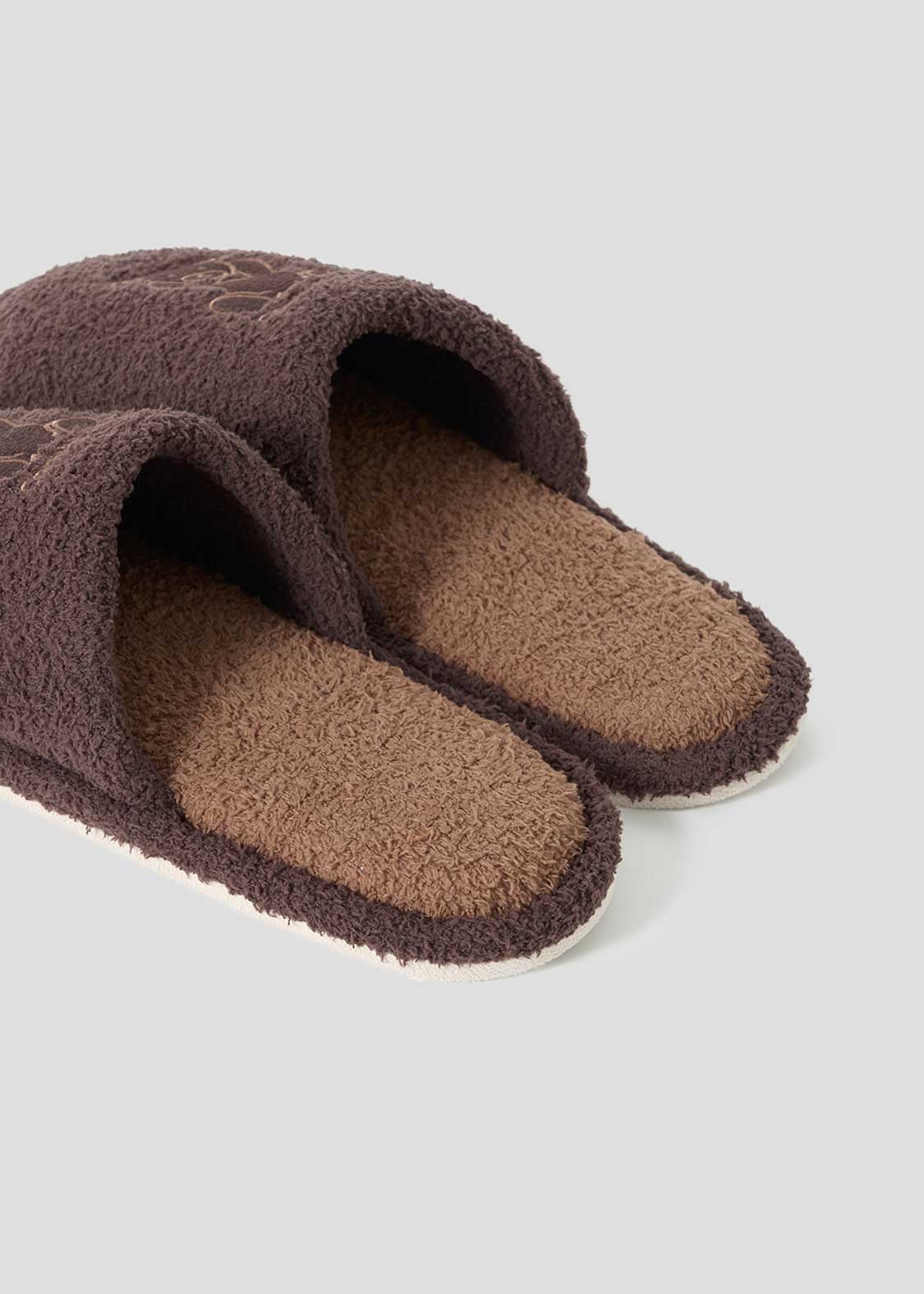 ・オリジナルグラフィックが刺繍されたふんわり素材のルームシューズ。