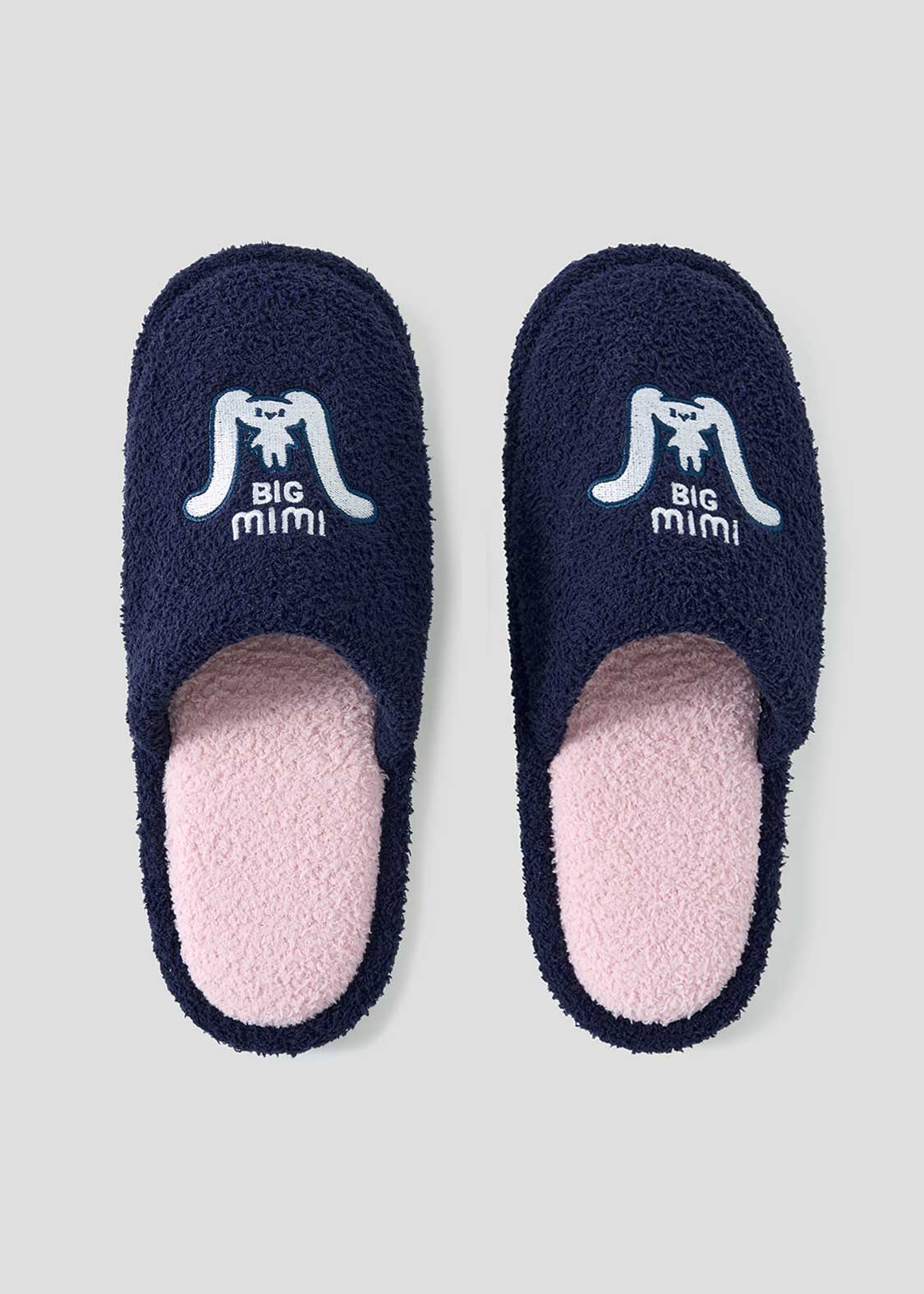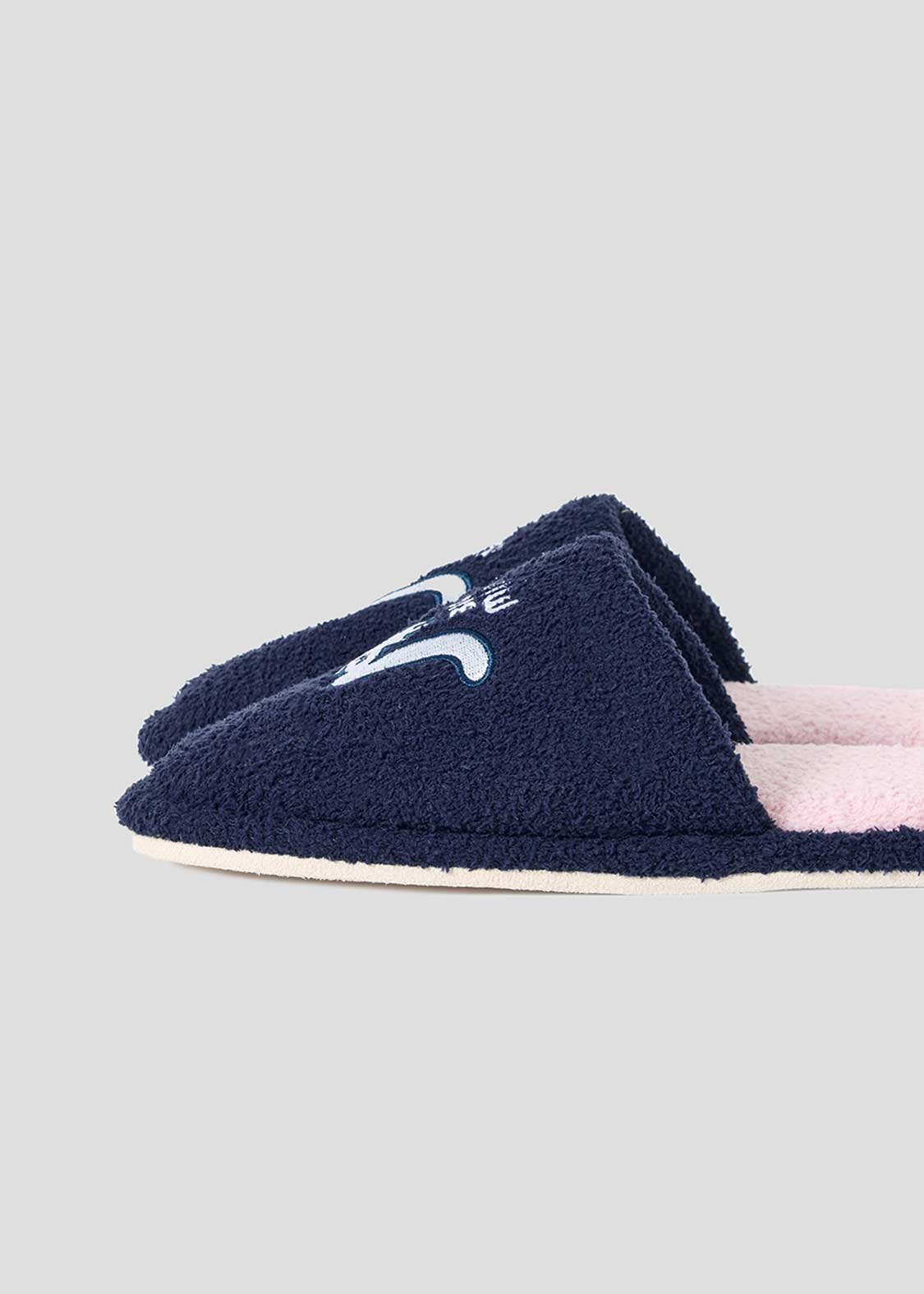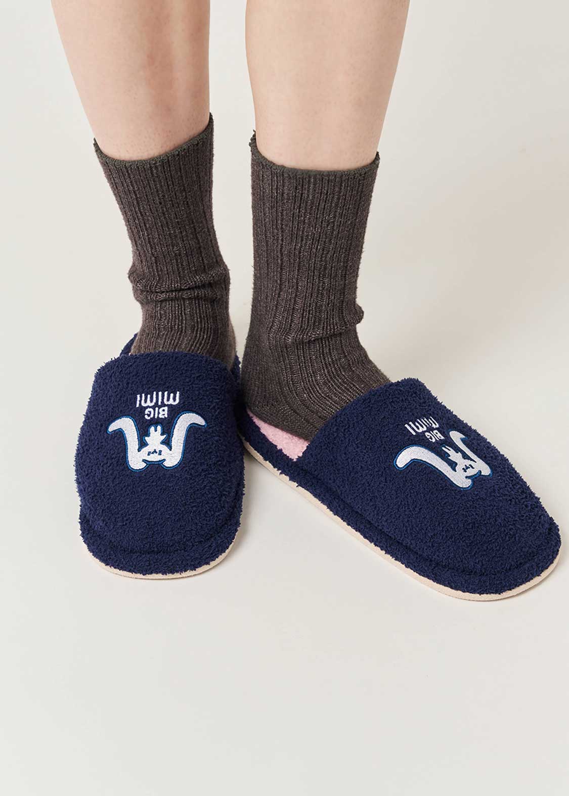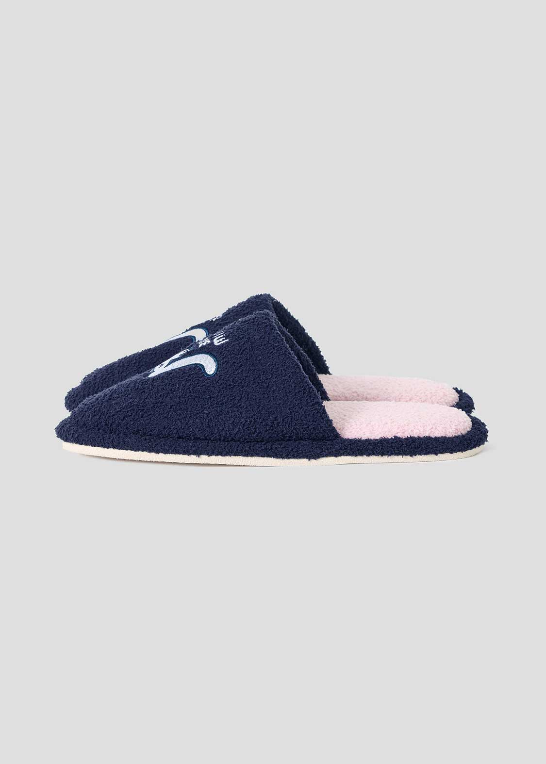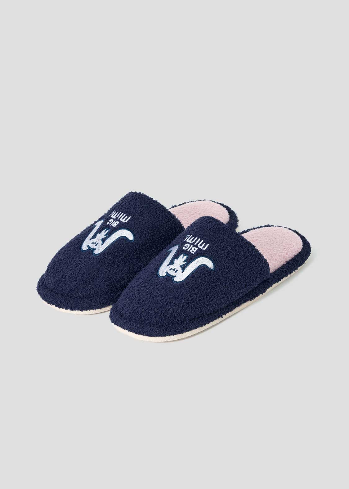 ・オリジナルグラフィックが刺繍されたふんわり素材のルームシューズ。