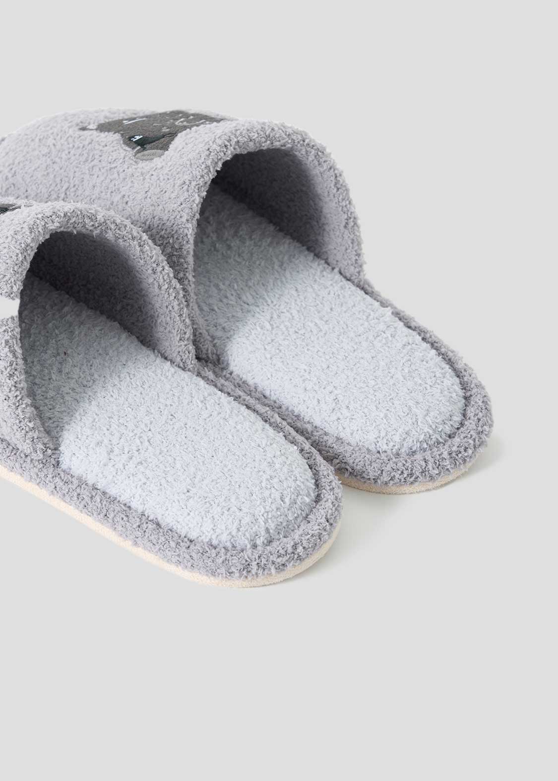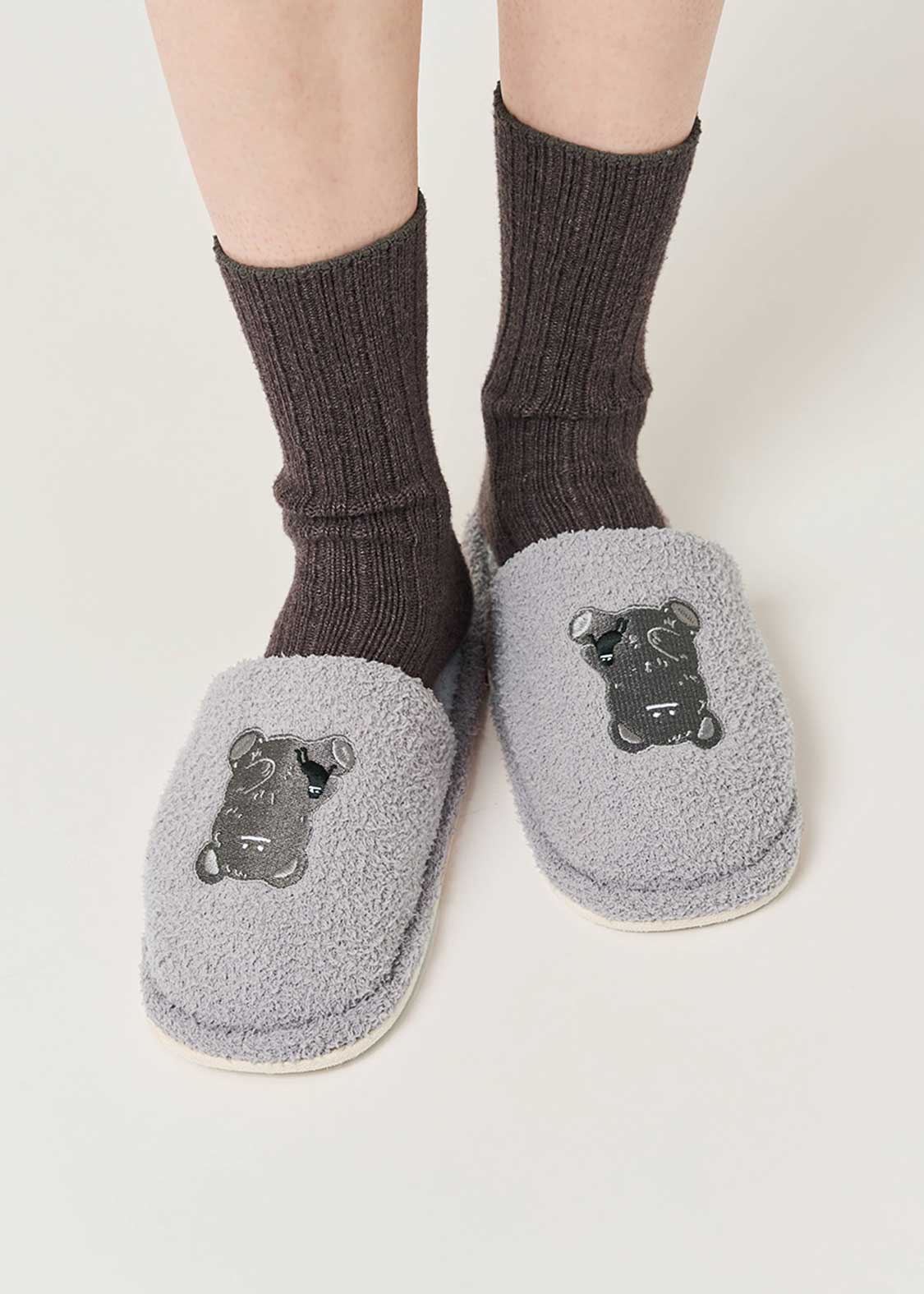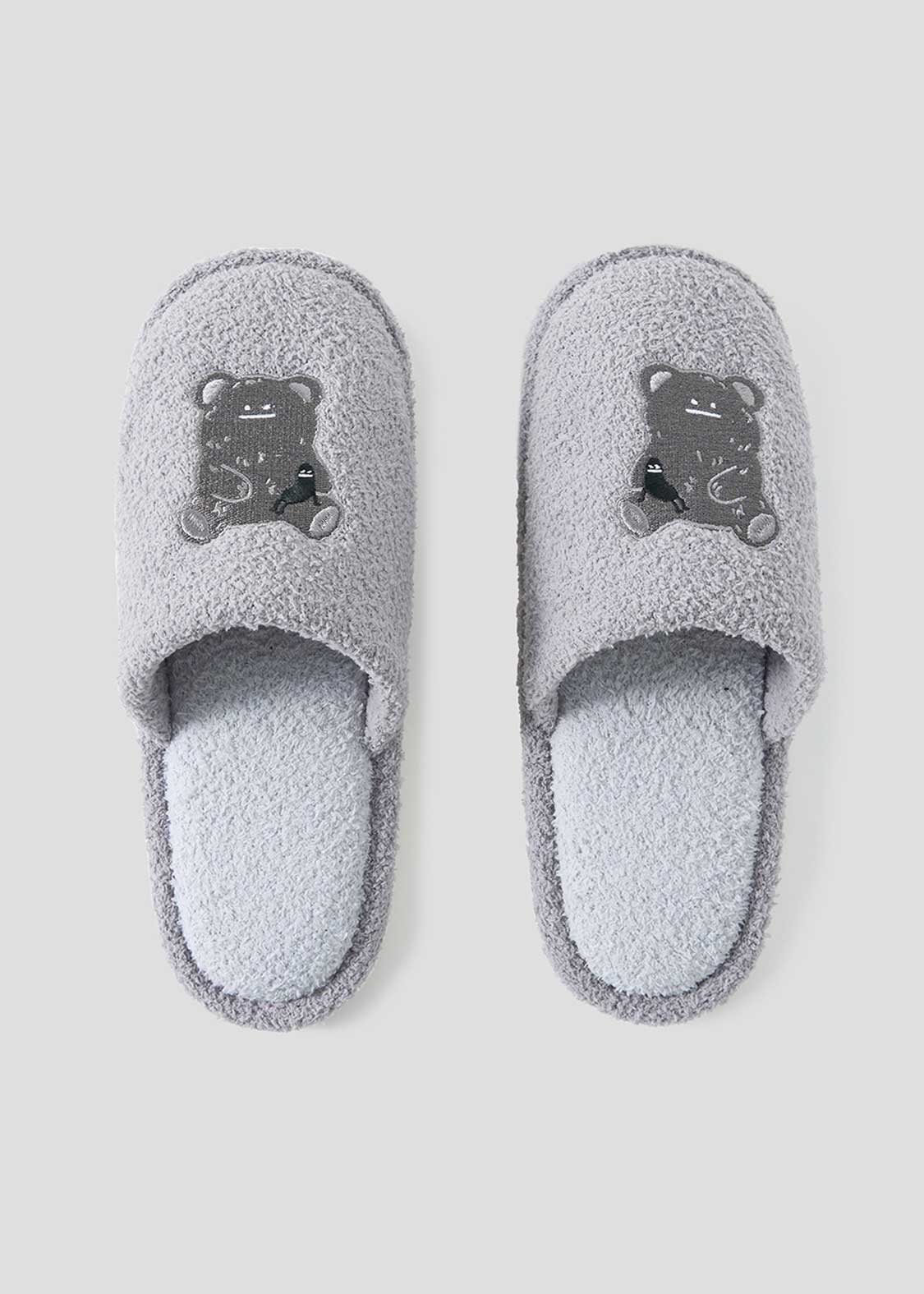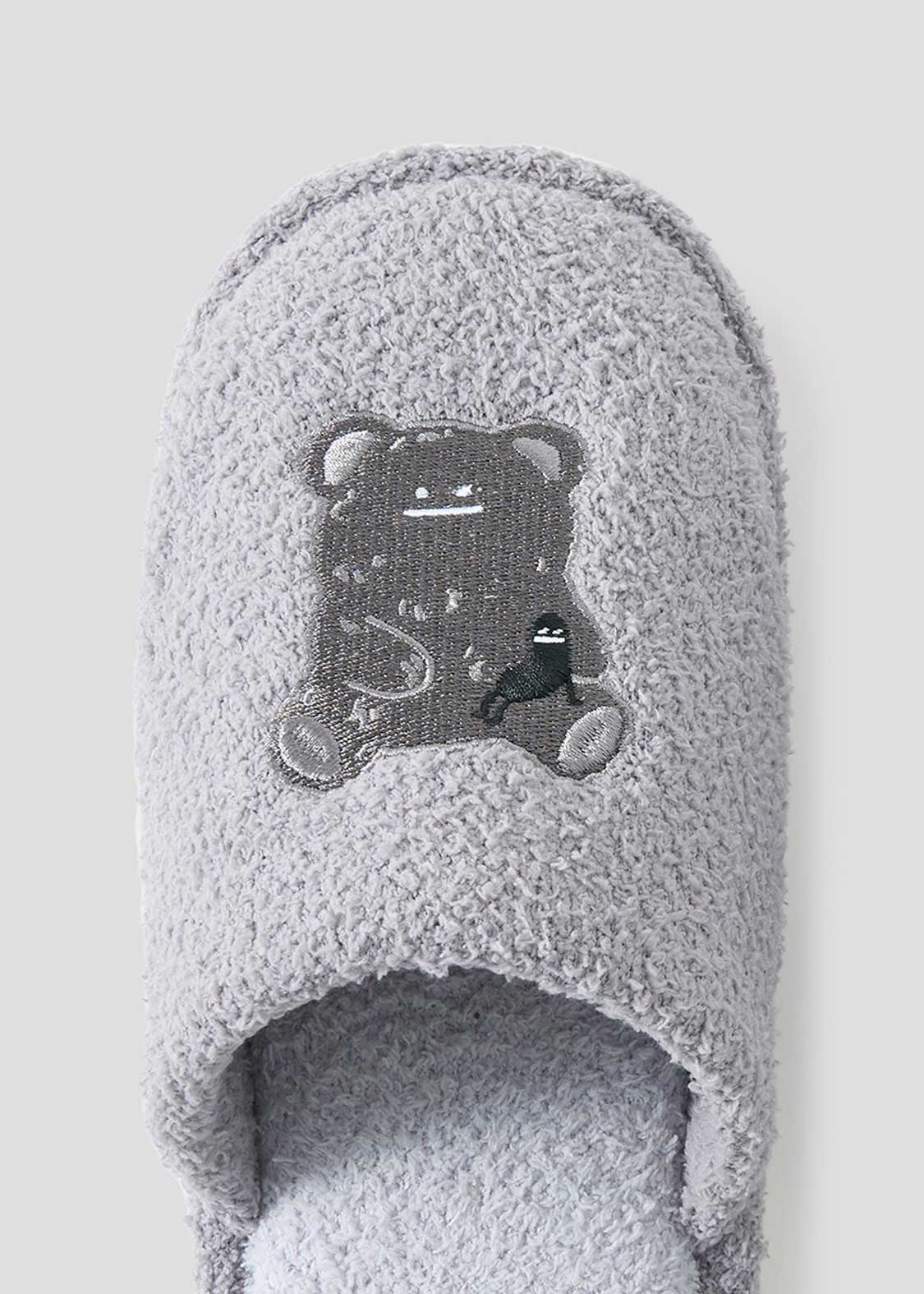 ・オリジナルグラフィックが刺繍されたふんわり素材のルームシューズ。