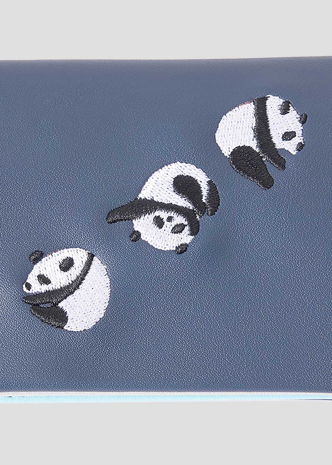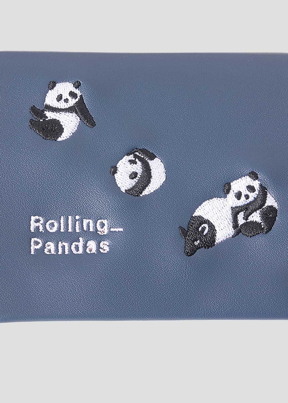 毬のように体を丸めた赤ちゃんパンダが、ころころと転がり落ちていく。その愛らしい姿に思わずほっこり気分になる、キュートなデザインです。