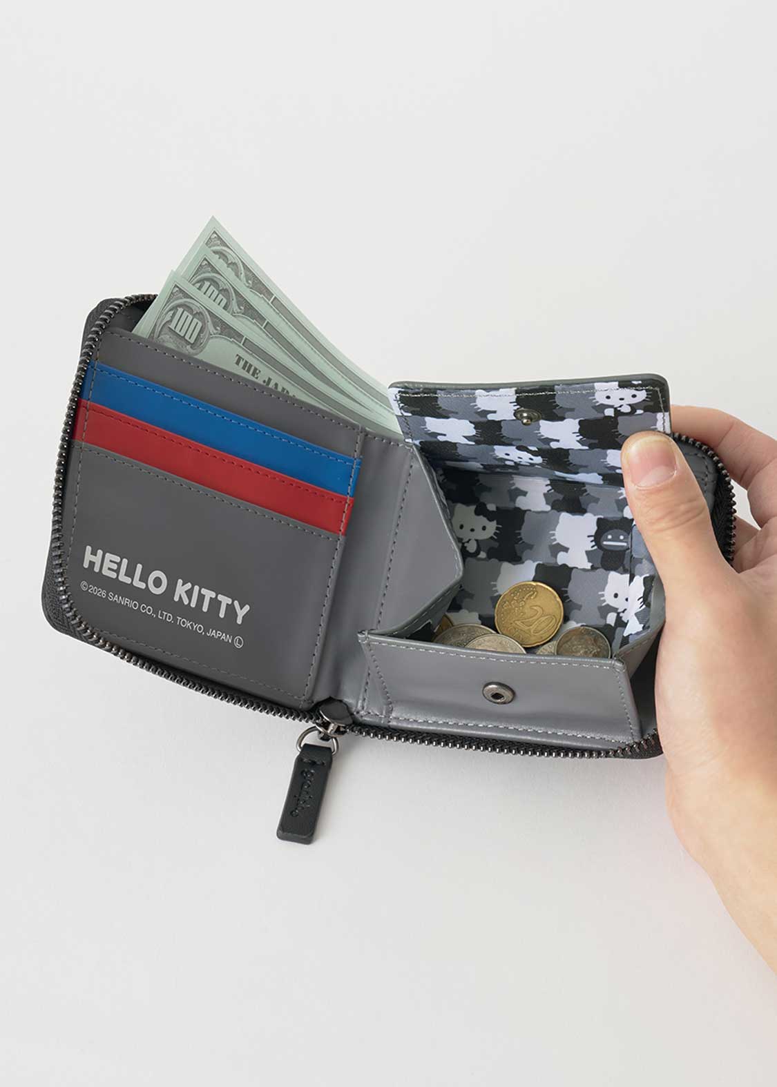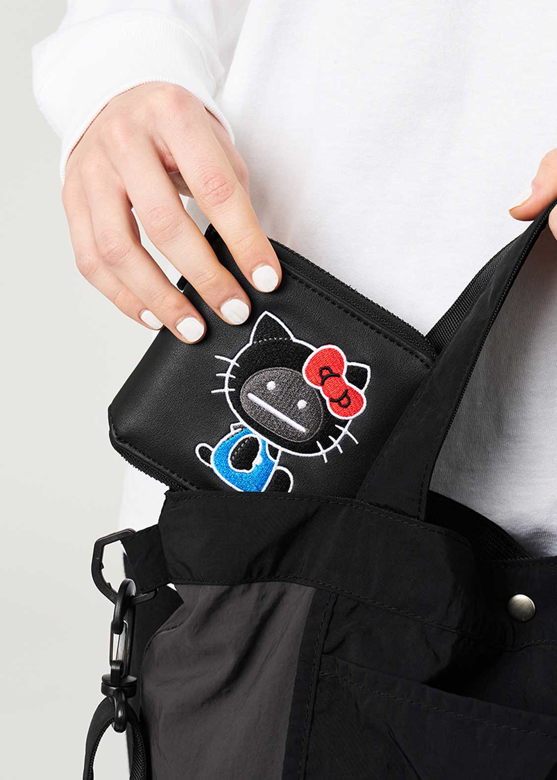世界中のみんなから愛されているハローキティに憧れるビューティフルシャドー。ハローキティに憧れたシャドーが作った、自分自身がハローキティの格好をしたぬいぐるみを刺繍で表現しました。ハローキティをイメージした内側のカードケースの青と赤がポイント。ハローキティのシルエットパターンになったコインケースの内側にも注目です。