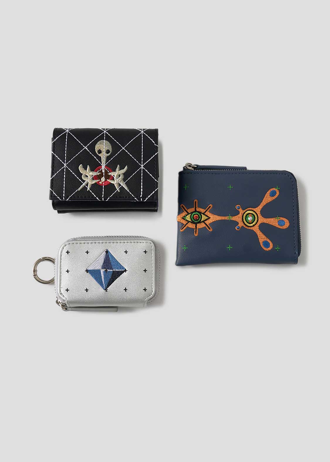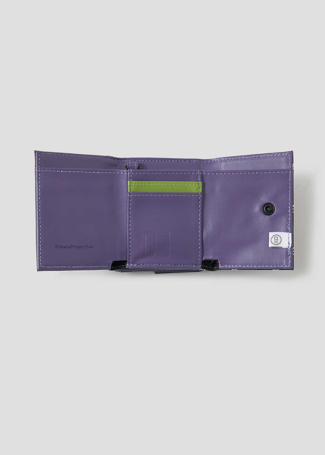 使徒をイメージした特別仕様のウォレットセット。ケース内の透明スリーブにはアダムのシルエットがプリントされています。第3使徒サキエルイメージしたウォレットは初号機、第10使徒サハクィエルをイメージしたコインケースは弐号機、第5使徒ラミエルをイメージしたキーケースは零号機のモチーフが内側にデザインされています。