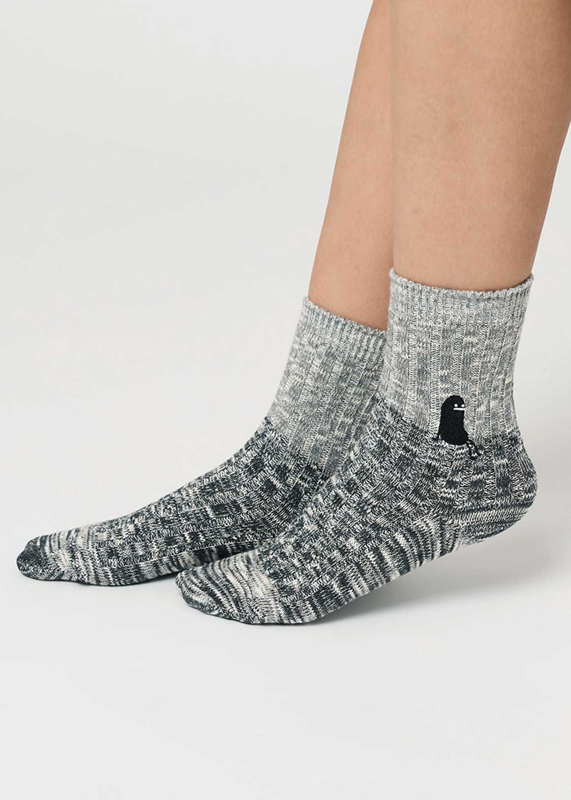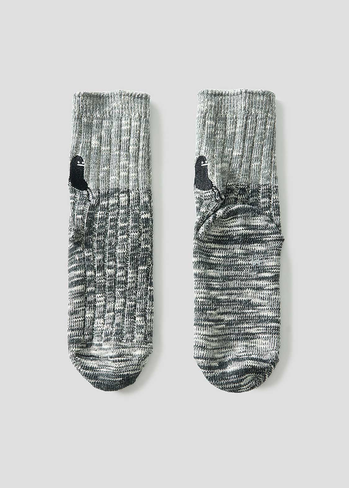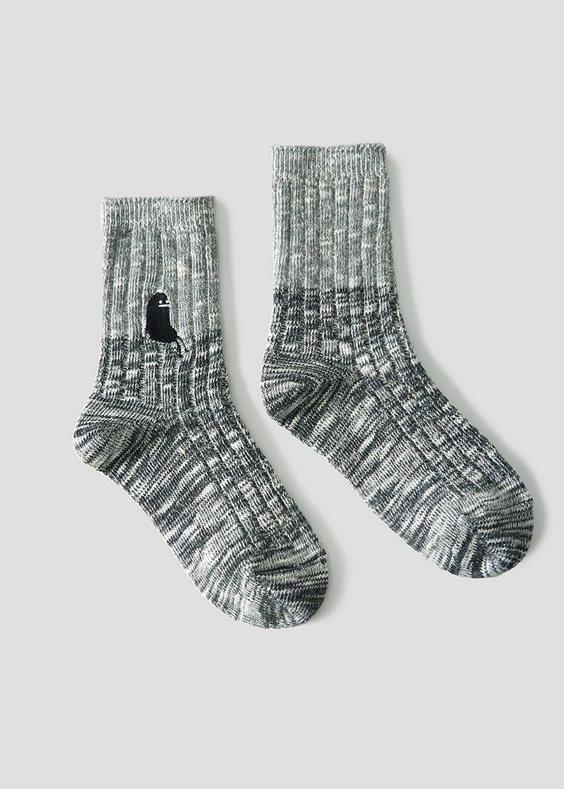 ・グラフィックを刺繍で表現した、ミドル丈のリブソックス。