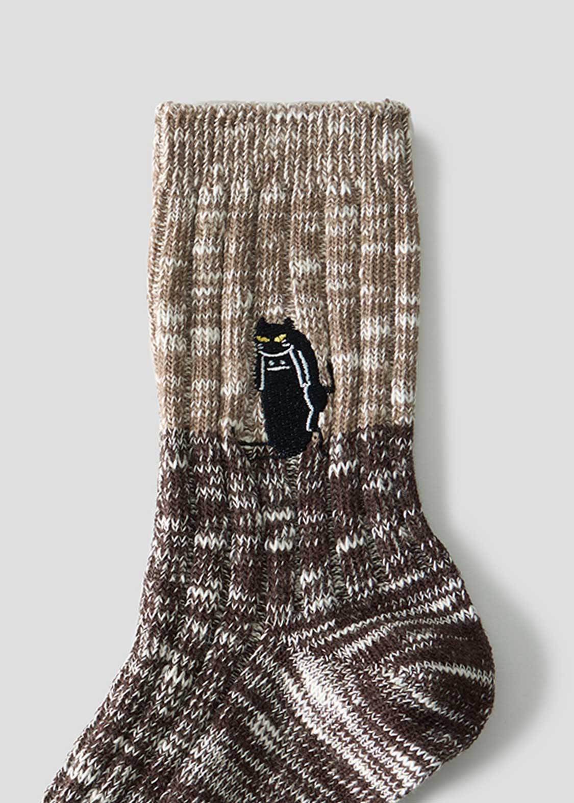 ・グラフィックを刺繍で表現した、ミドル丈のリブソックス。