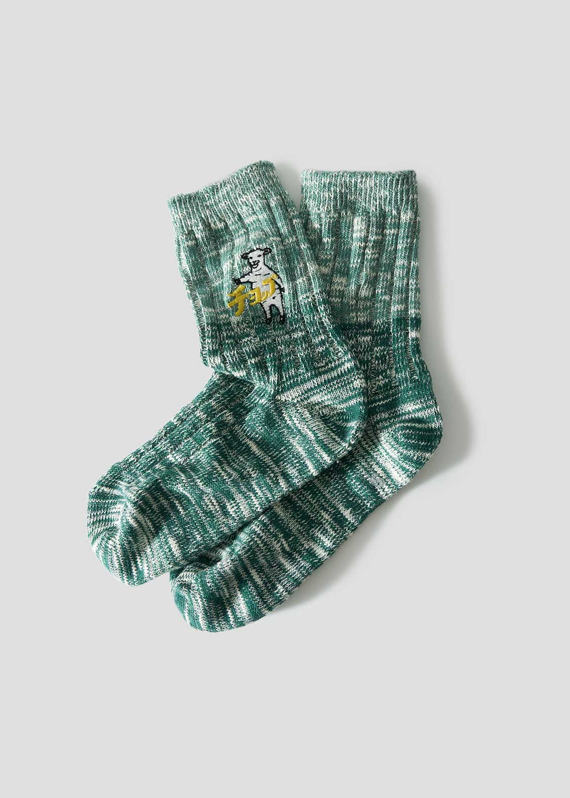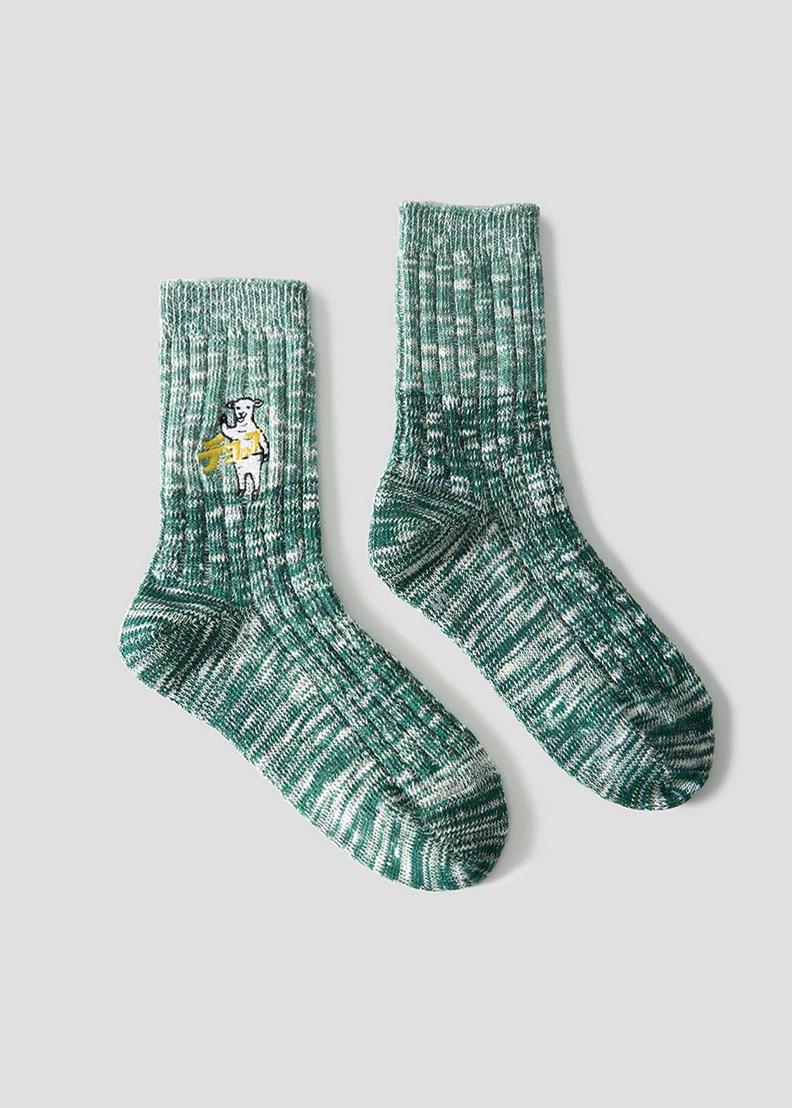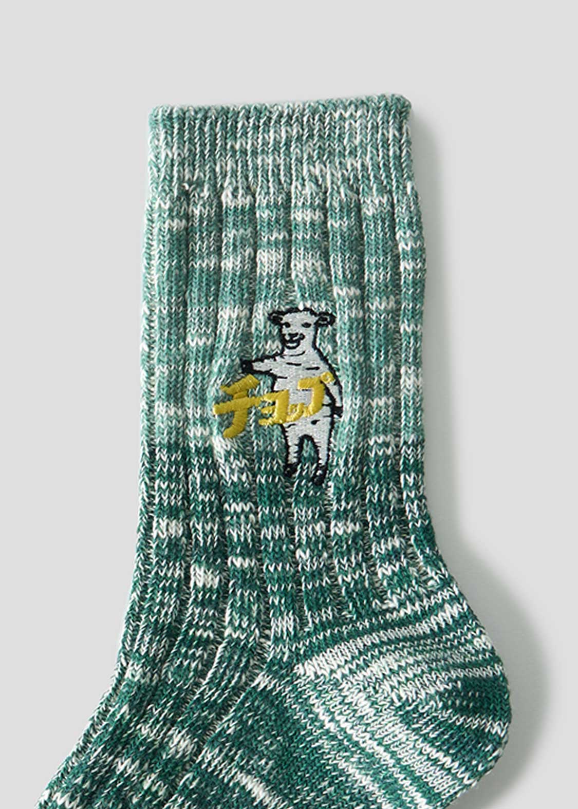 ・グラフィックを刺繍で表現した、ミドル丈のリブソックス。