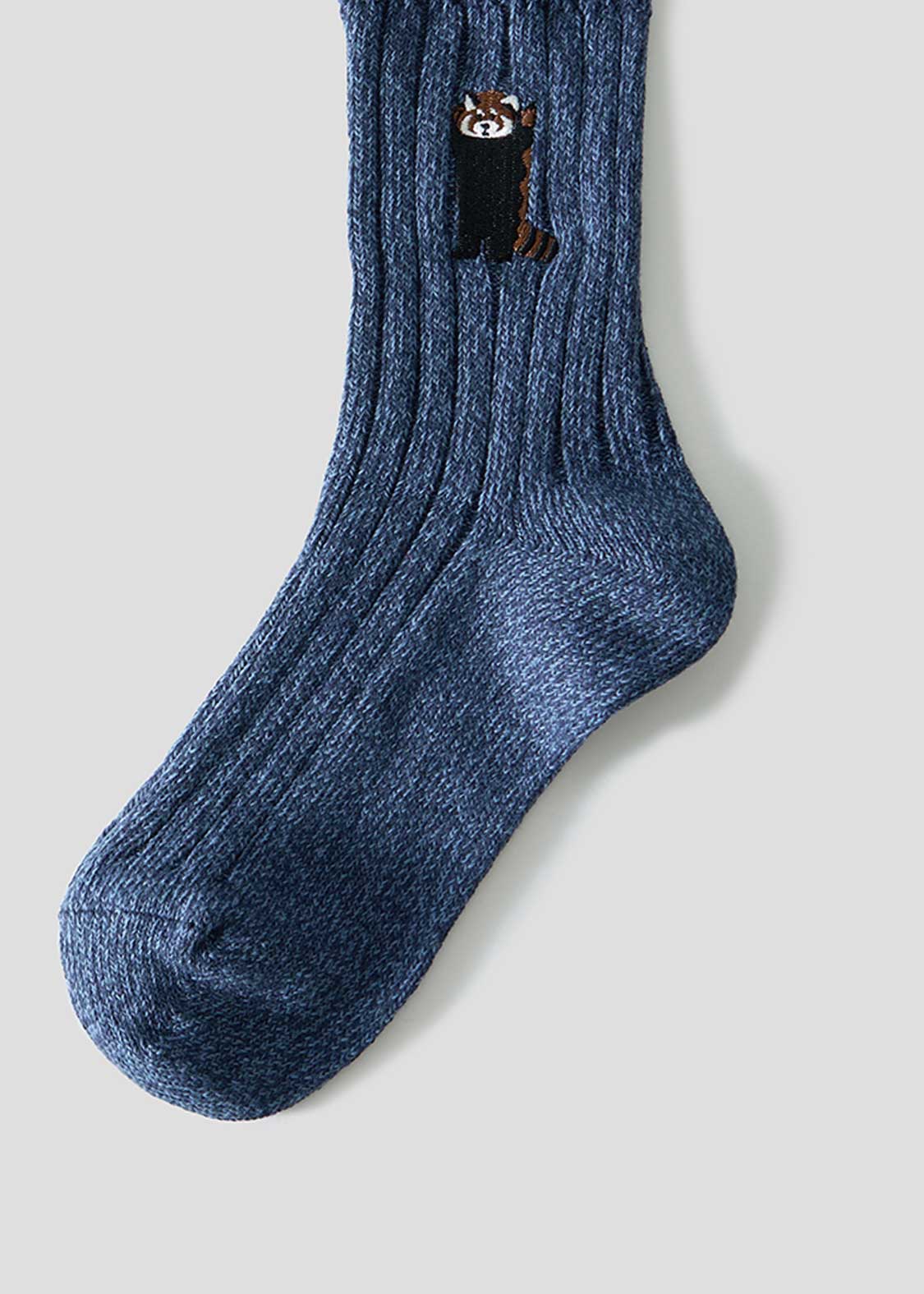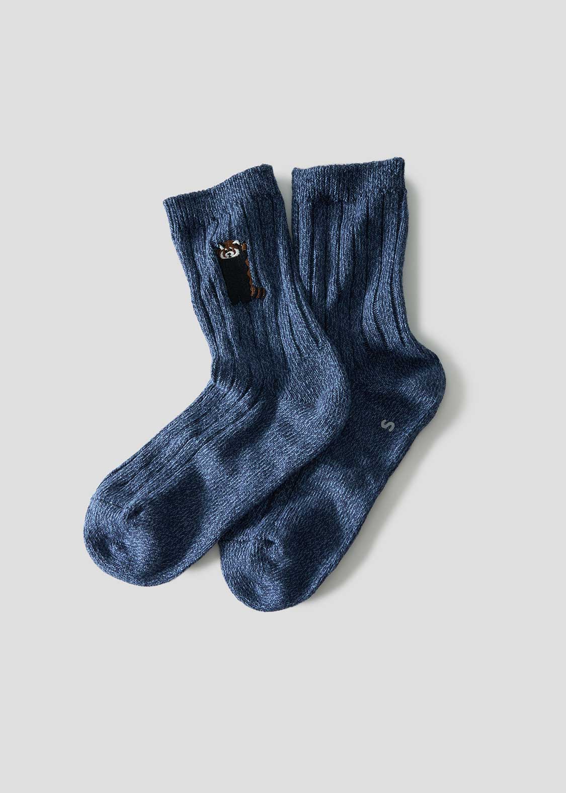 ・グラフィックを刺繍で表現した、ミドル丈のリブソックス。