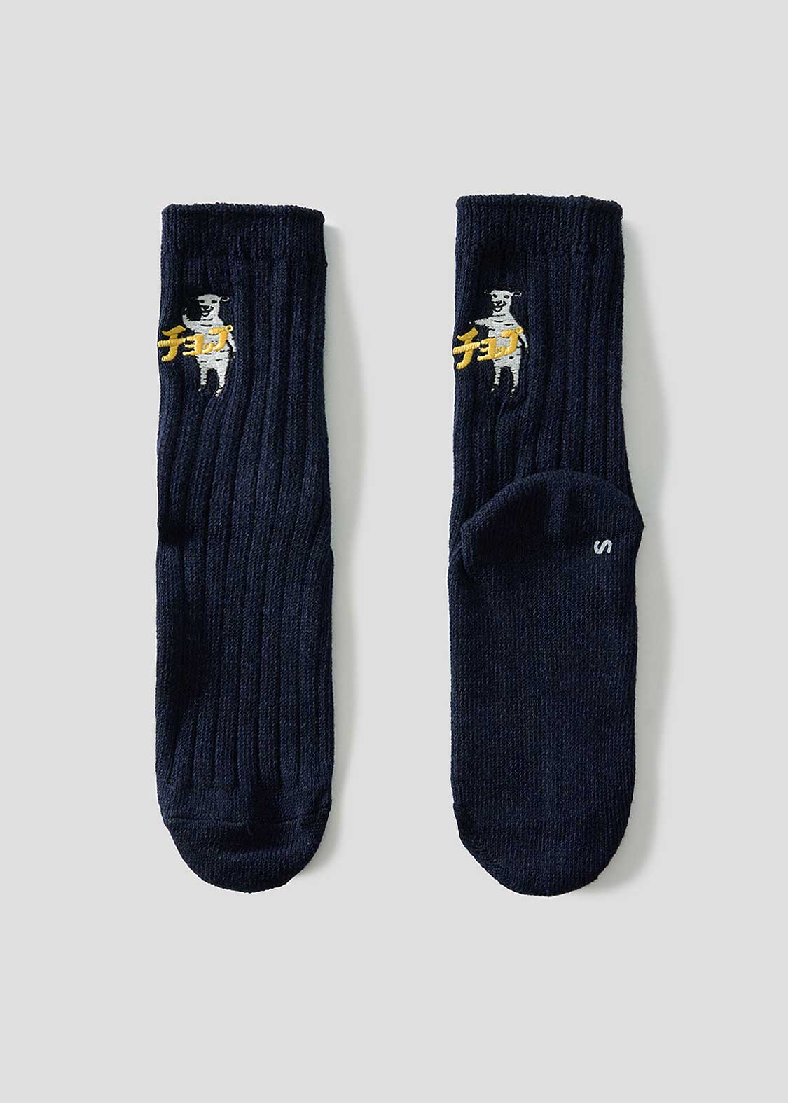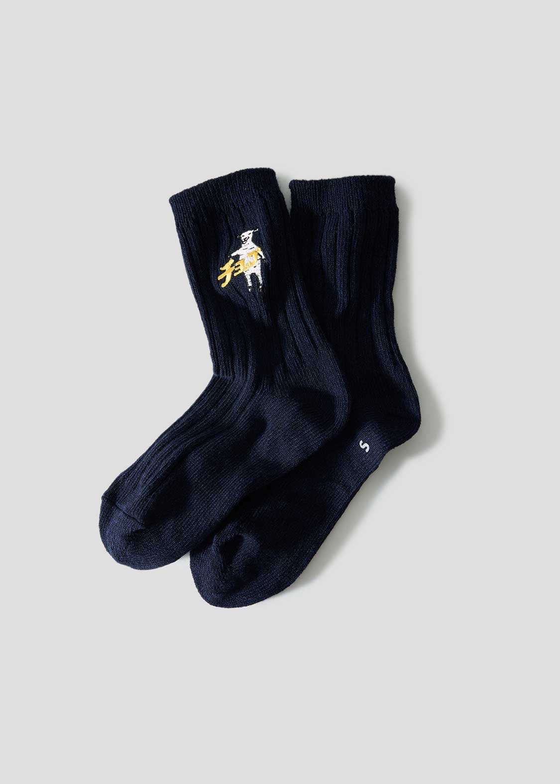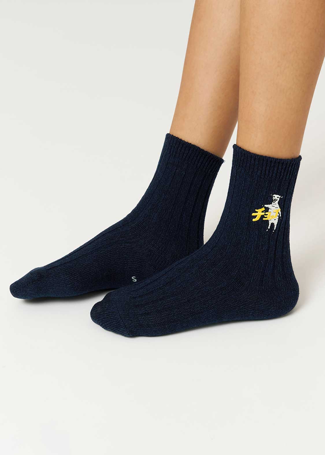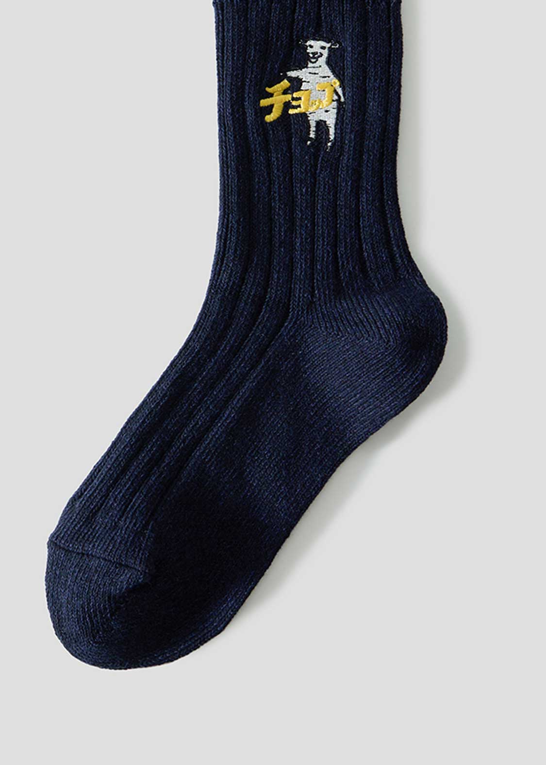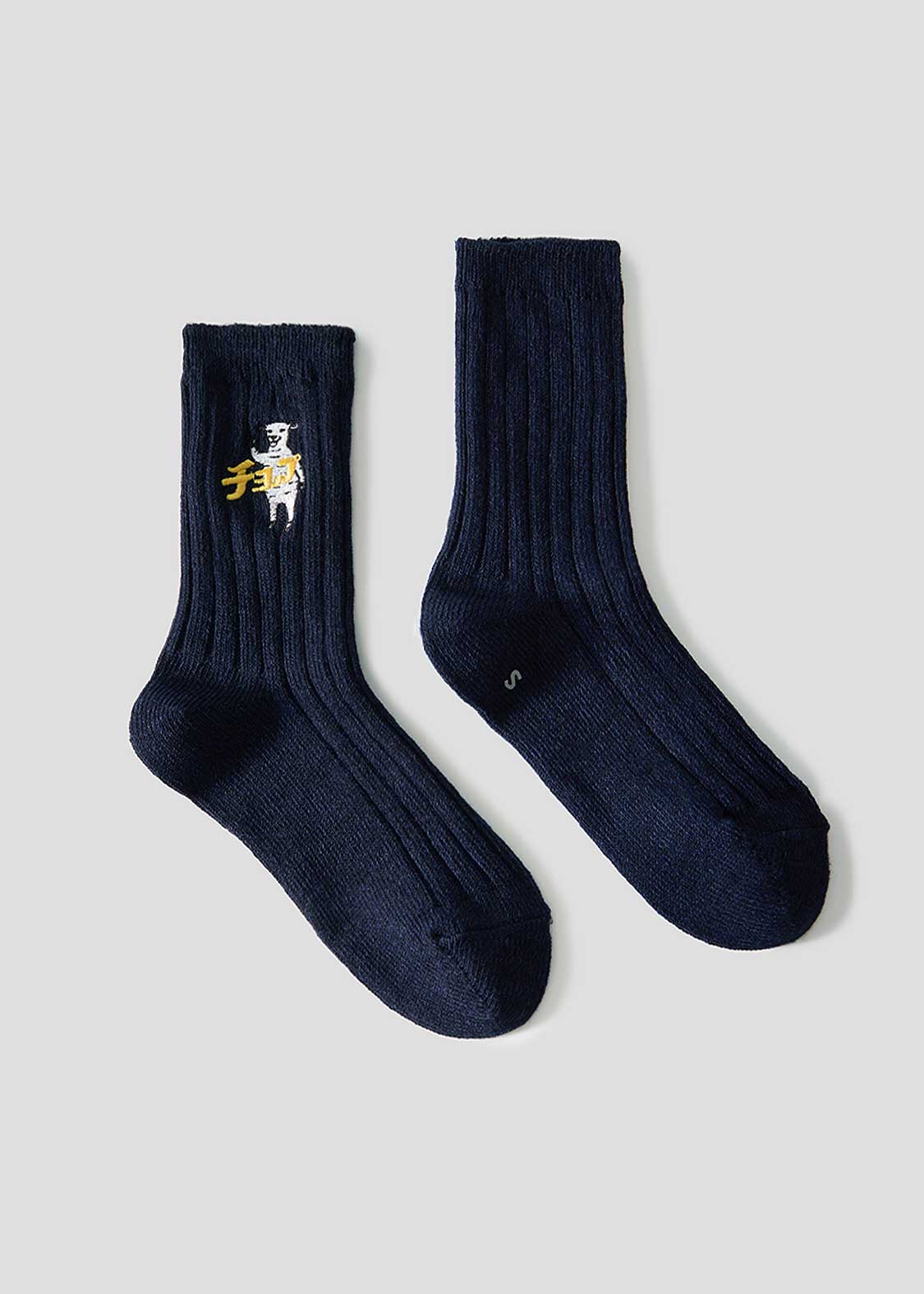 ・グラフィックを刺繍で表現した、ミドル丈のリブソックス。