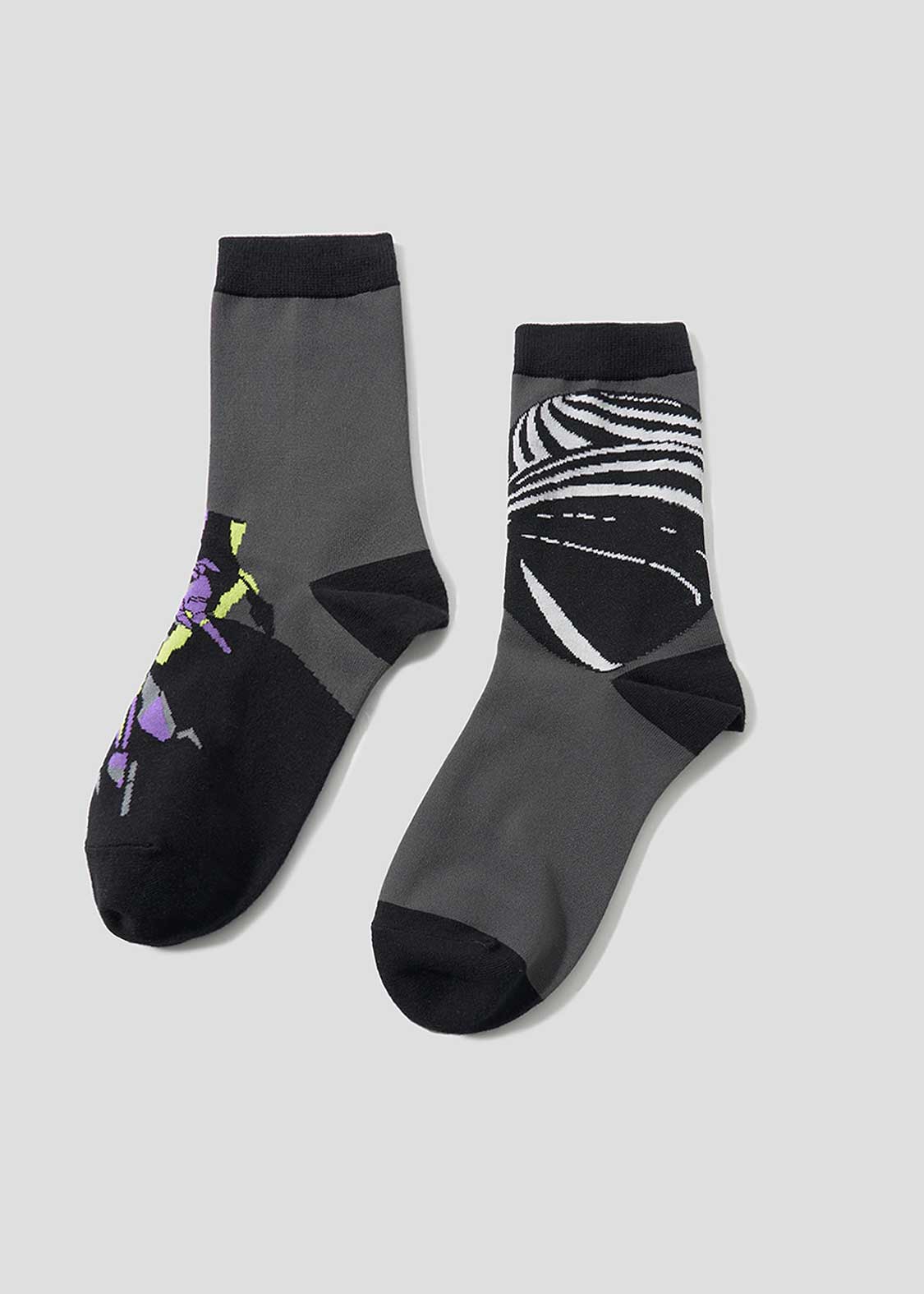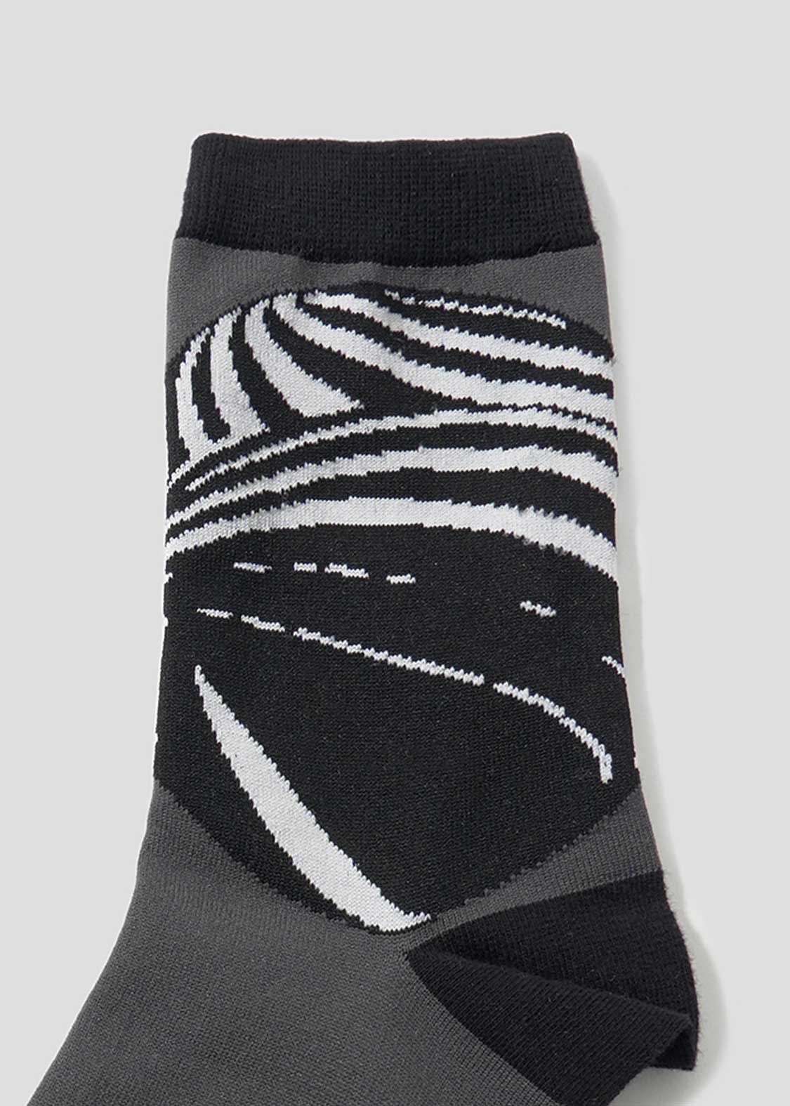 ・細かなグラフィックをジャカードで表現したソックス。