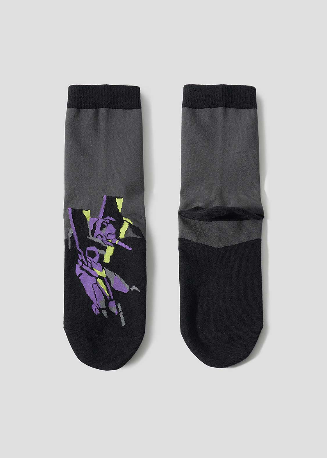 第拾六話「死に至る病、そして」より。第12使徒レリエルの影に飲み込まれてしまう初号機のワンシーンをジャカード編みで表現したデザインです。