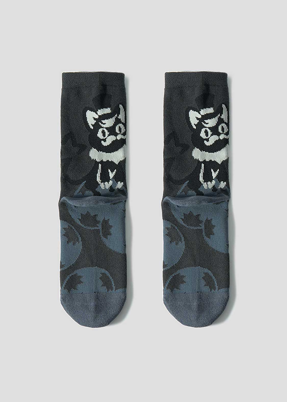 『ブレイブリーデフォルトII』より。精霊モンスターのケットシーをジャカード編みで表現したデザインです。玉乗りに夢中になっている間に、魔獣使いのアスタリスクで、てなづけてしまいましょう。