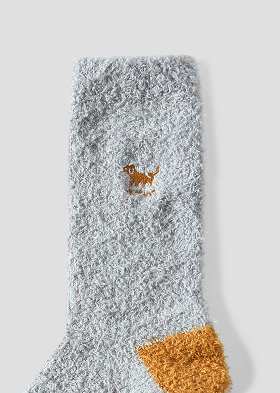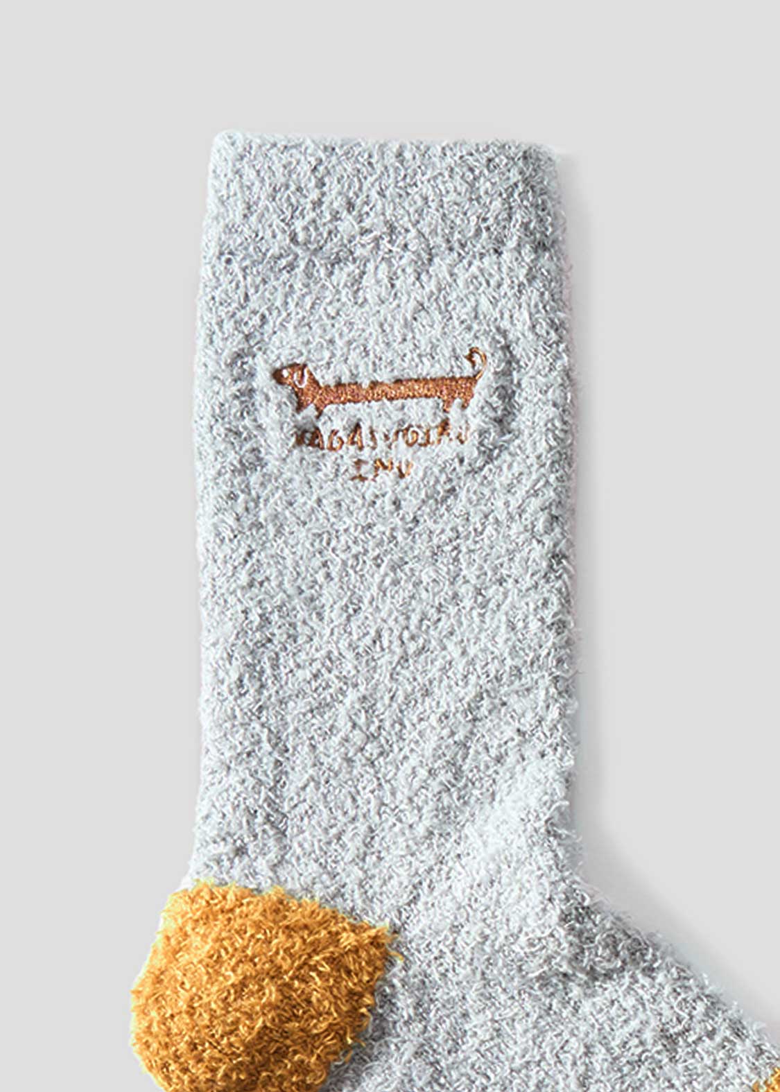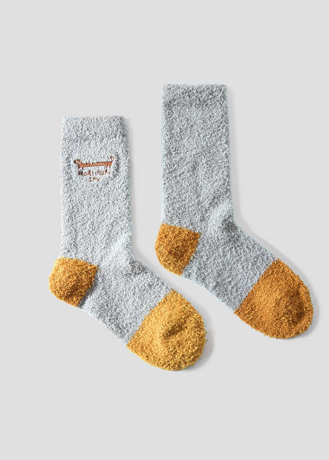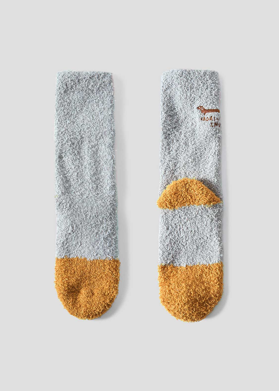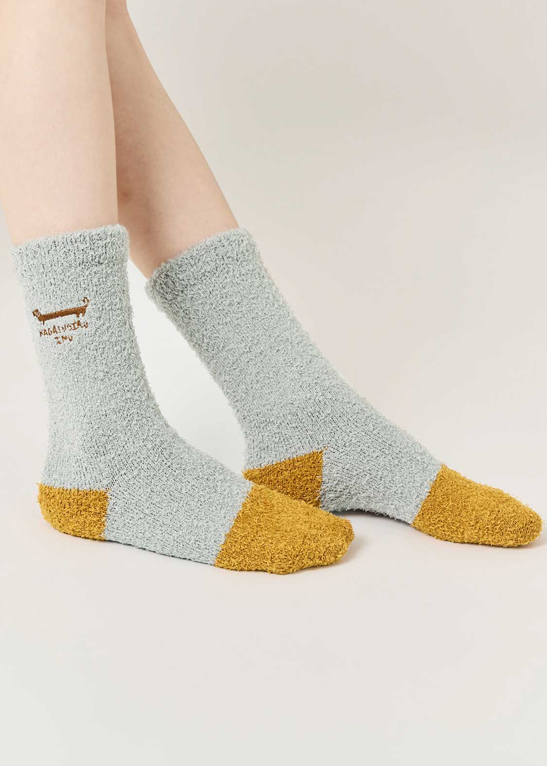 ・細かなグラフィックをジャカードで表現した、ロング丈のルームソックス。