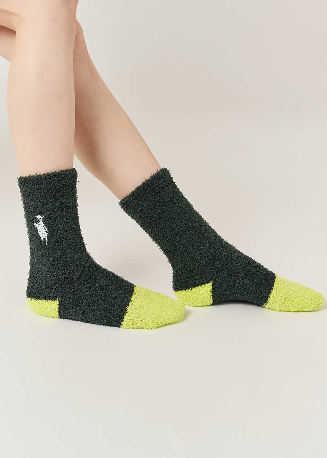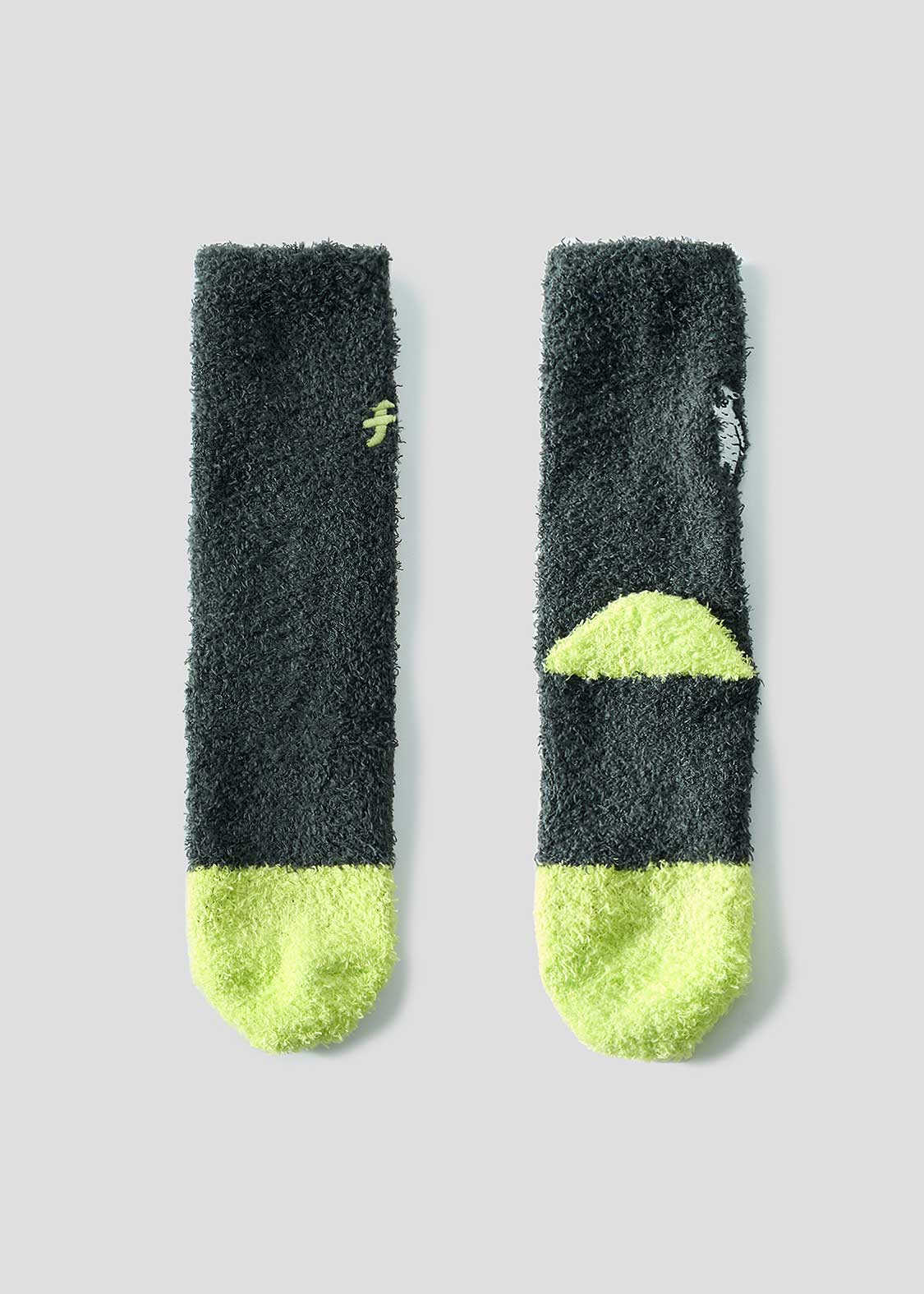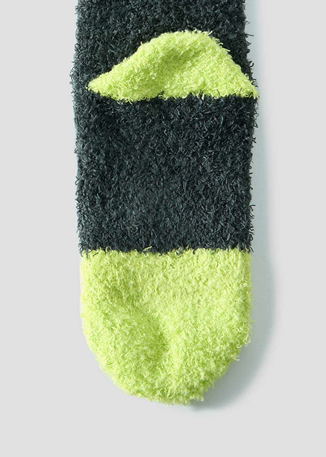 ・細かなグラフィックをジャカードで表現した、ロング丈のルームソックス。