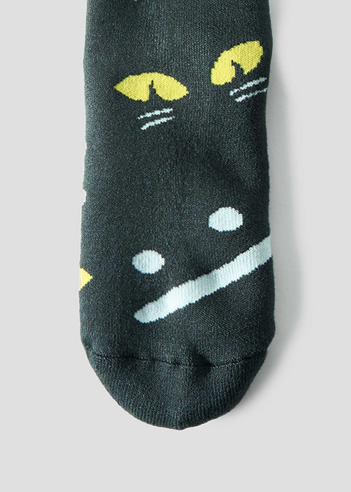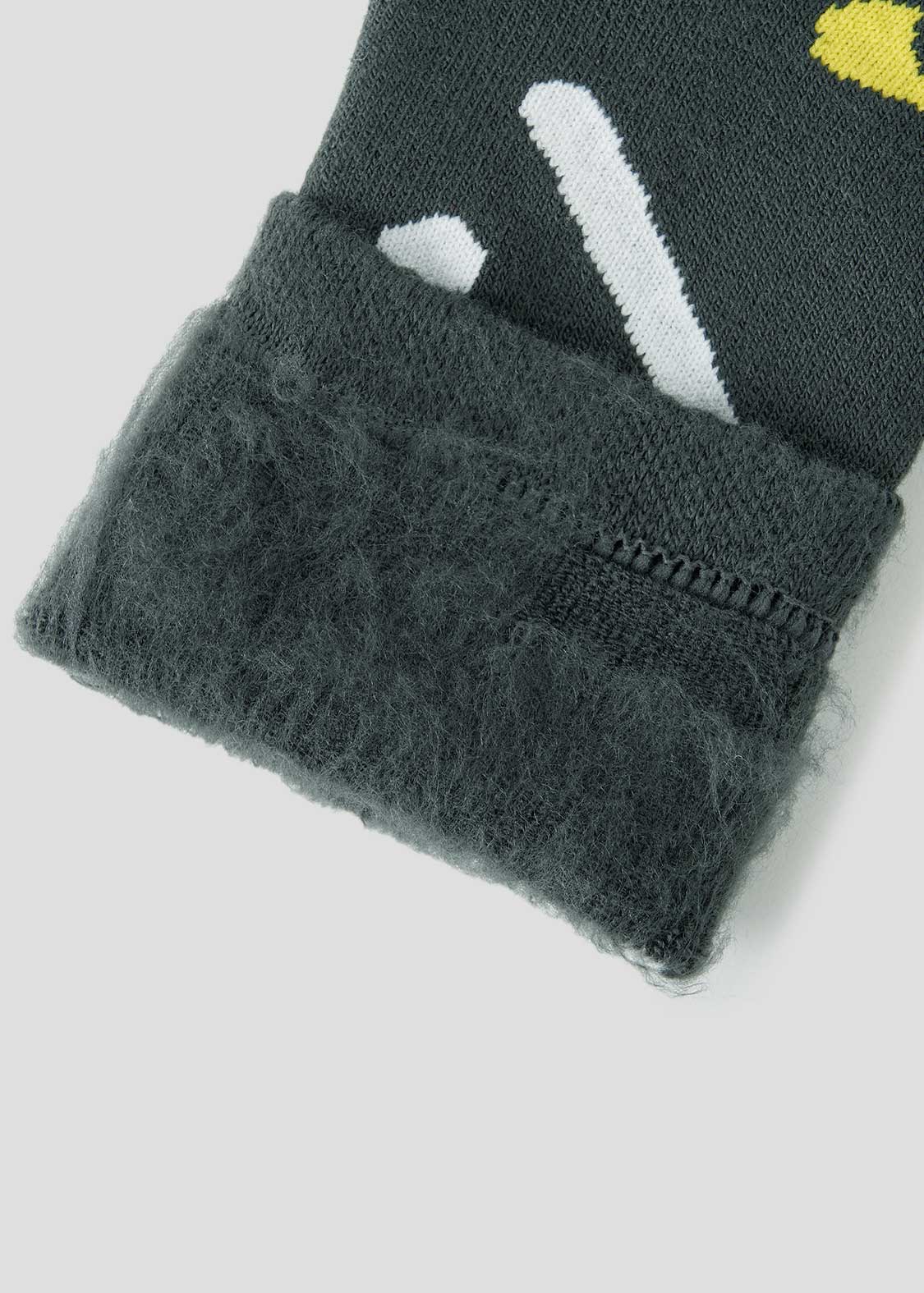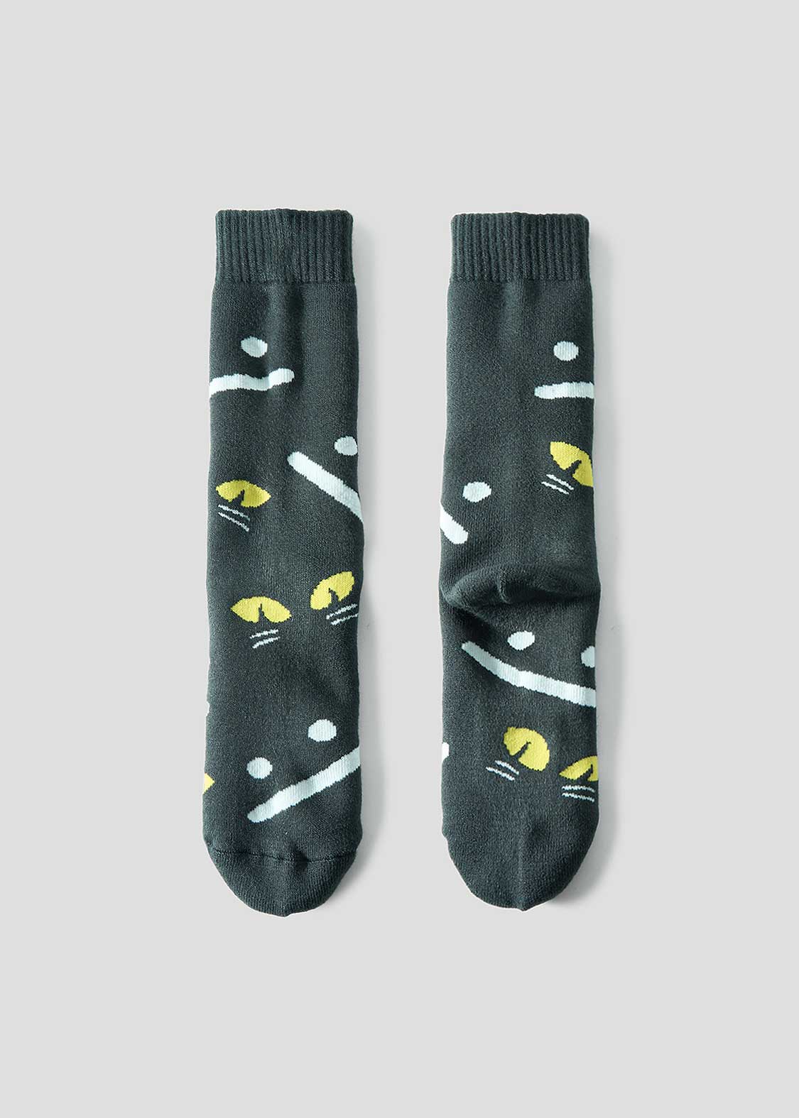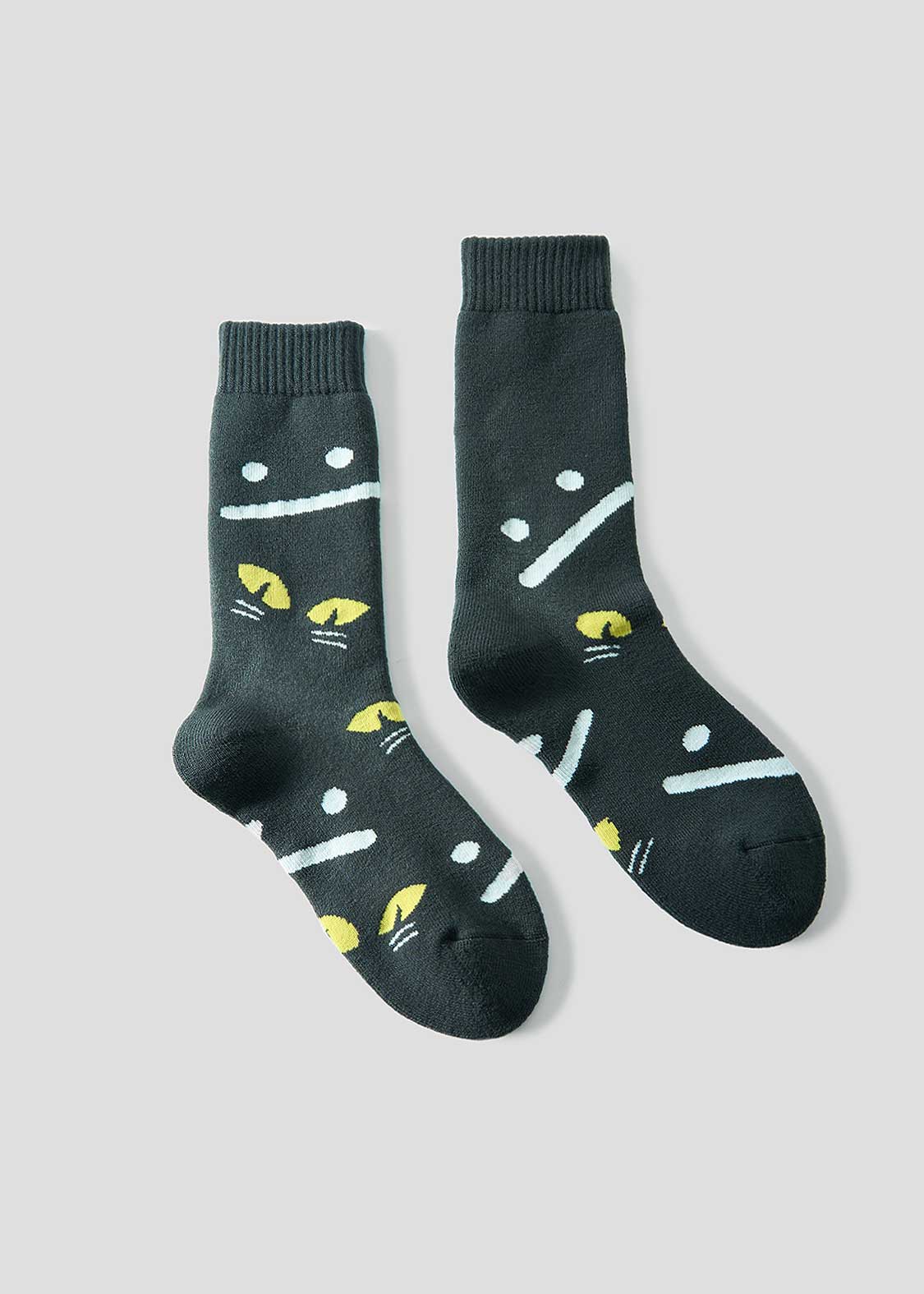 ・細かなグラフィックをジャカードで表現した、ロング丈のルームソックス。