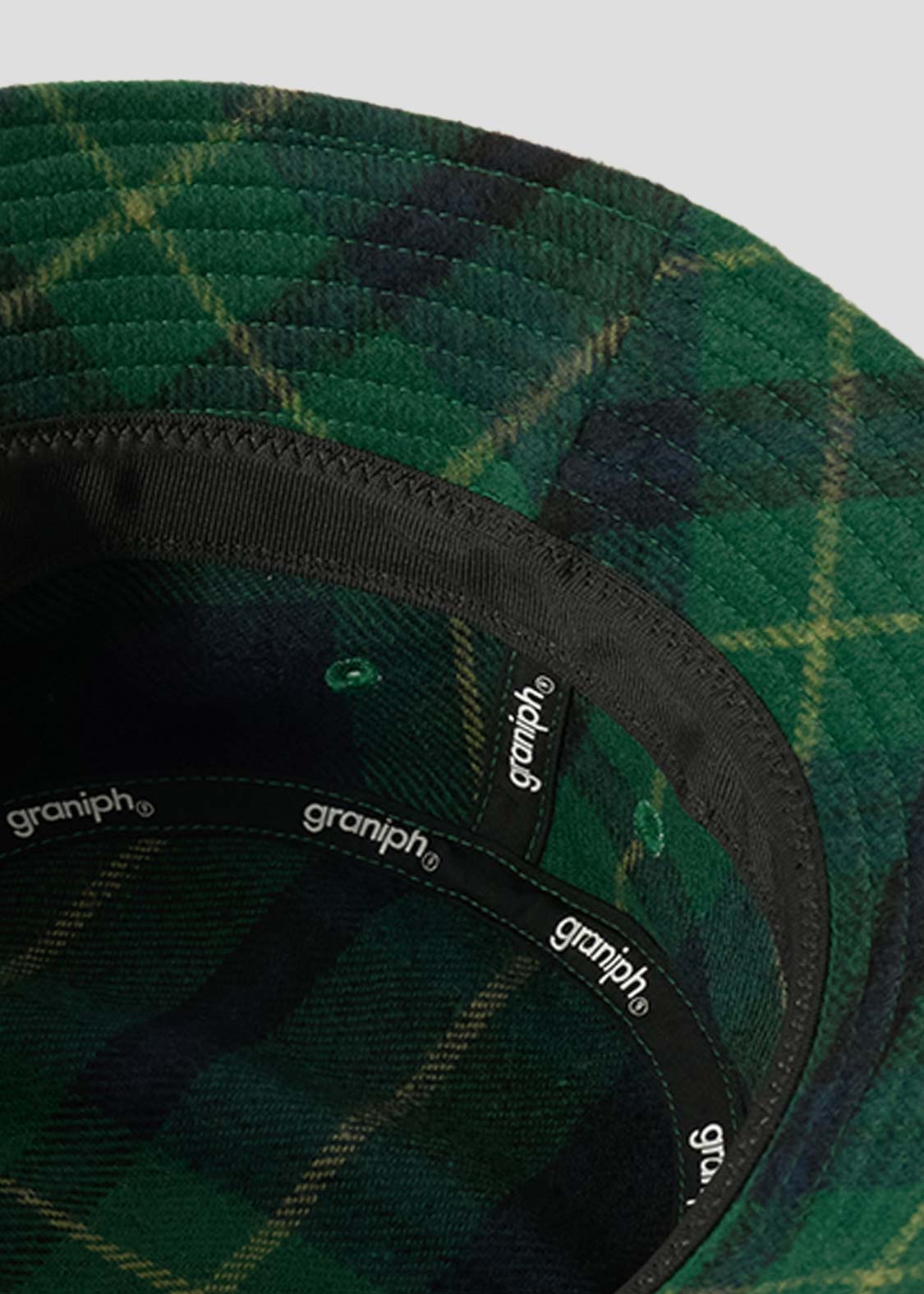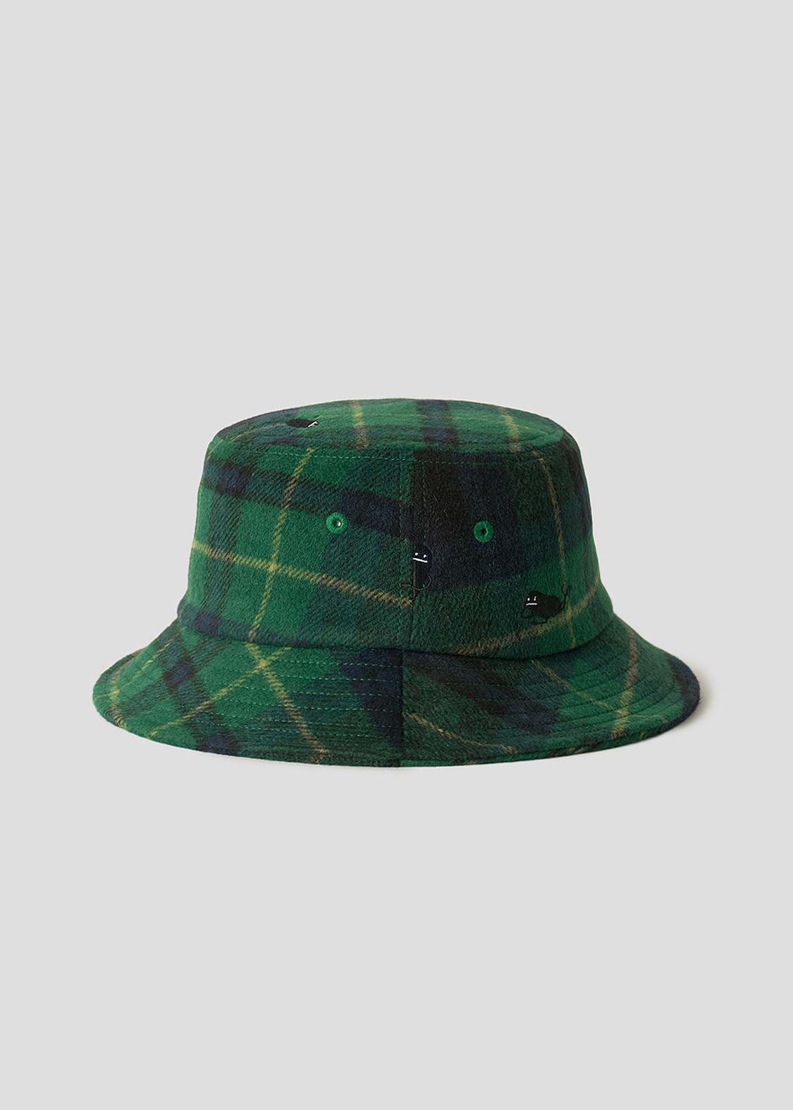 ・チェック生地を使用した、スタンダードなシルエットのバケットハット。