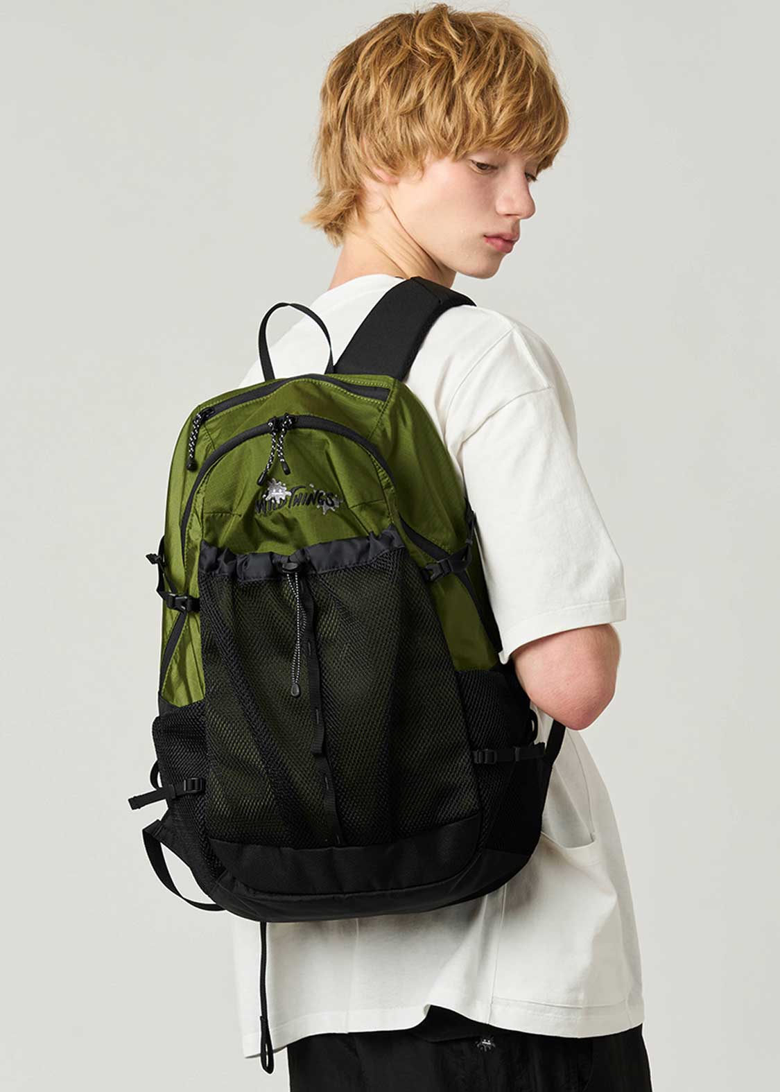 ・前面のオープンポケットはコードで口が絞れる仕様。