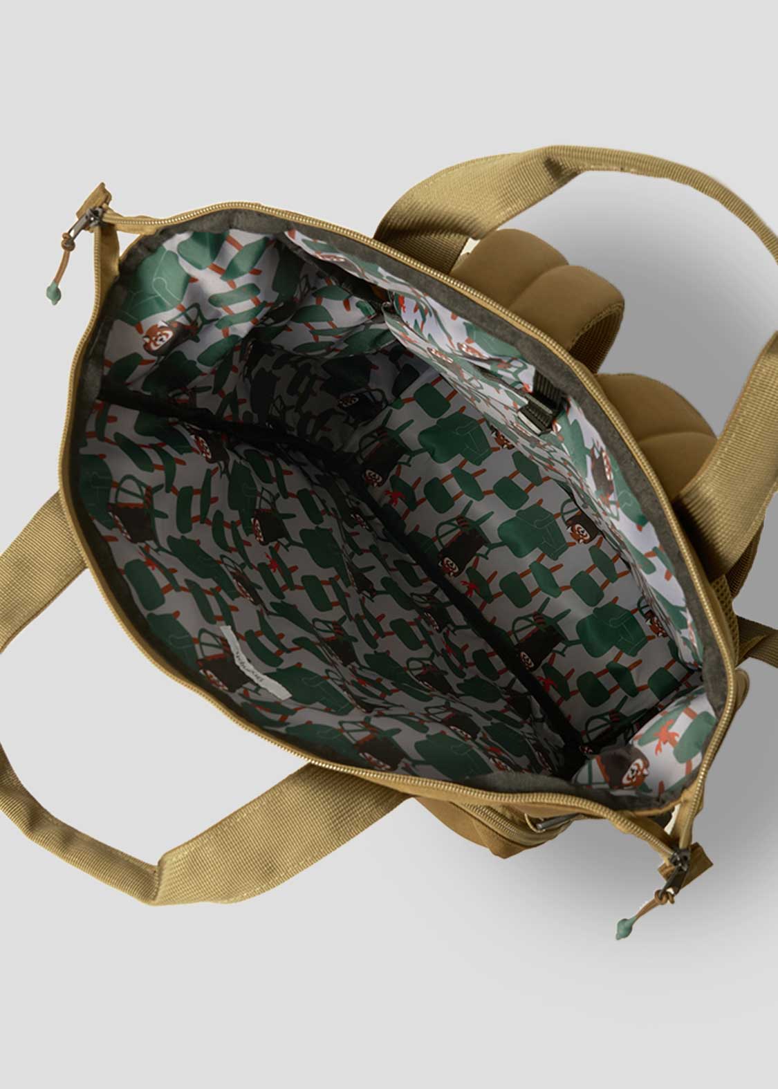 ・前面の大容量ファスナーポケットはジャバラ付きで、2つのオープンポケットとキーフック付き。