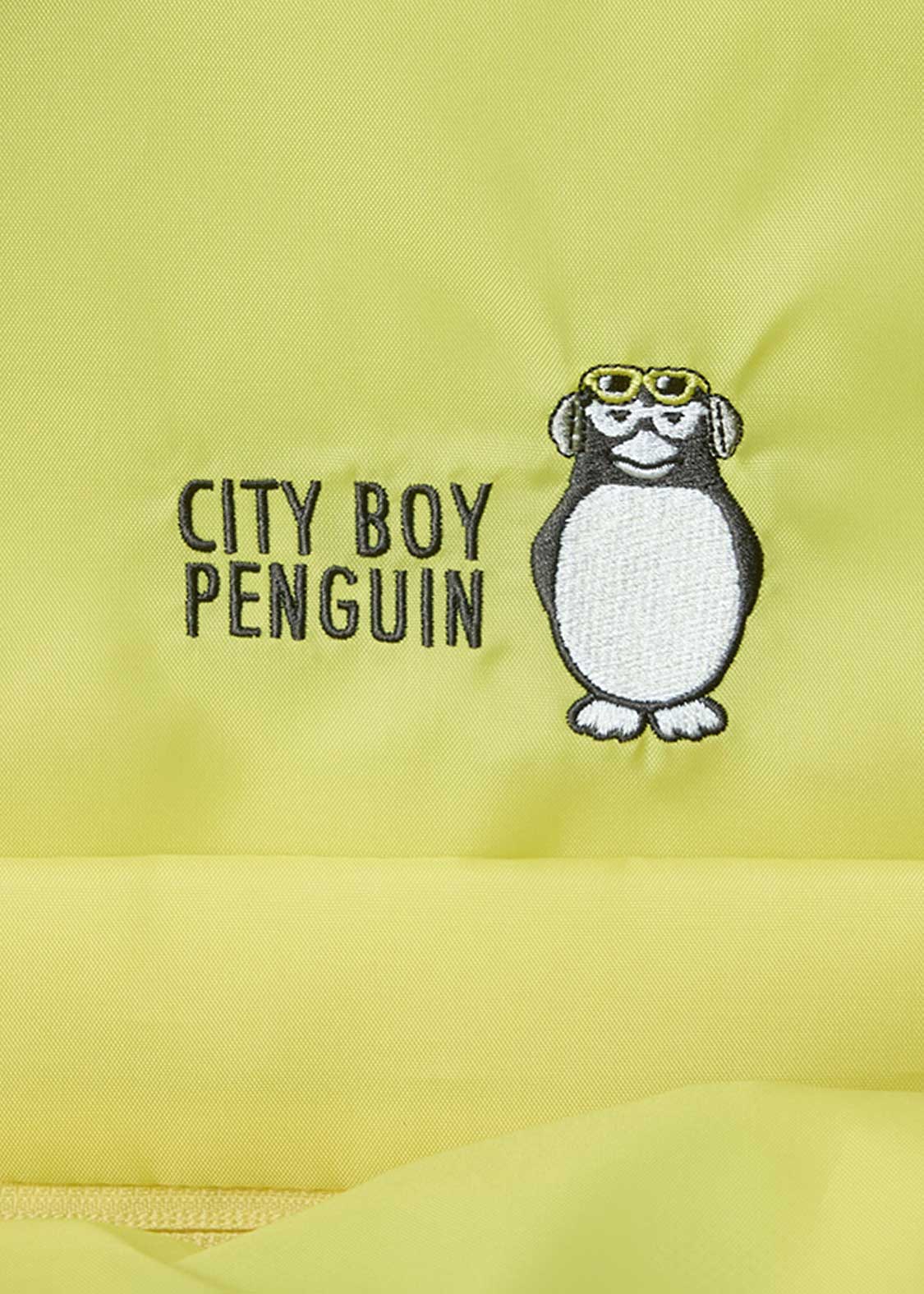 日焼けしやすい体質のペンギン、サニー。大きめのサングラスを外すと、そこには日焼けあとが。シティーボーイ・サニーのクールな夏の過ごし方がわかるイラストデザインです。