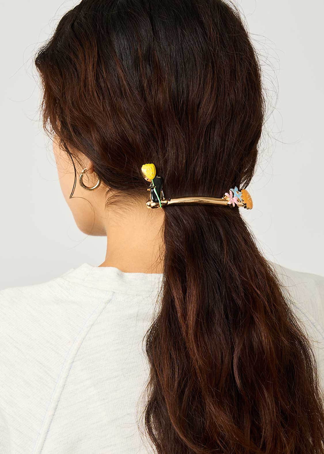 髪の毛のハーフアップ用に買いました。シャドーくんとお花が可愛いです。使わない時は、バッグのハンドル部分に挟んどいても可愛いと思います。