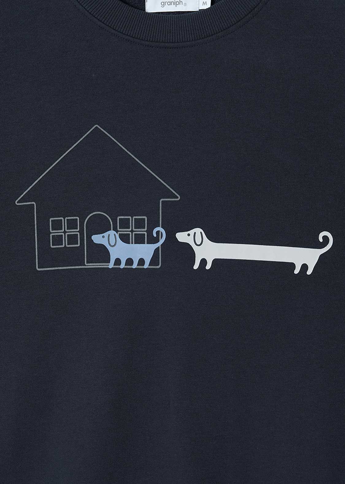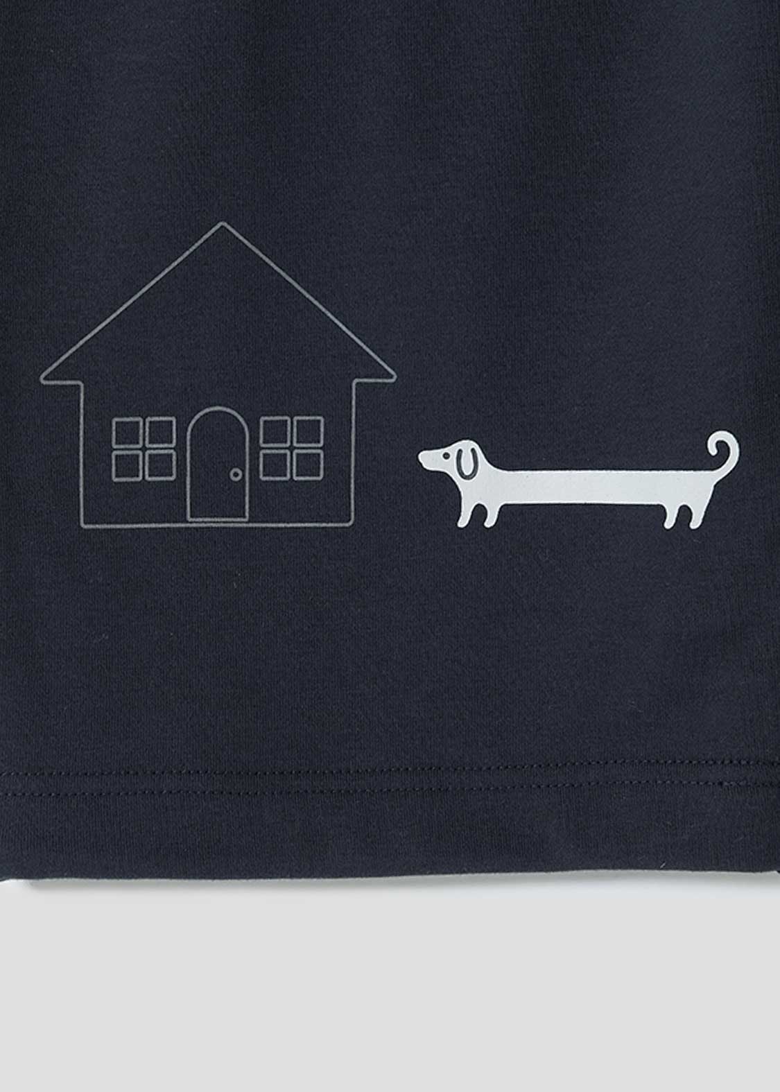小さなお家と、ナガスギルイヌを組み合わせたデザイン。家よりもながーーいサイズ感だけど、なぜか幸せなナガスギルイヌなのです。