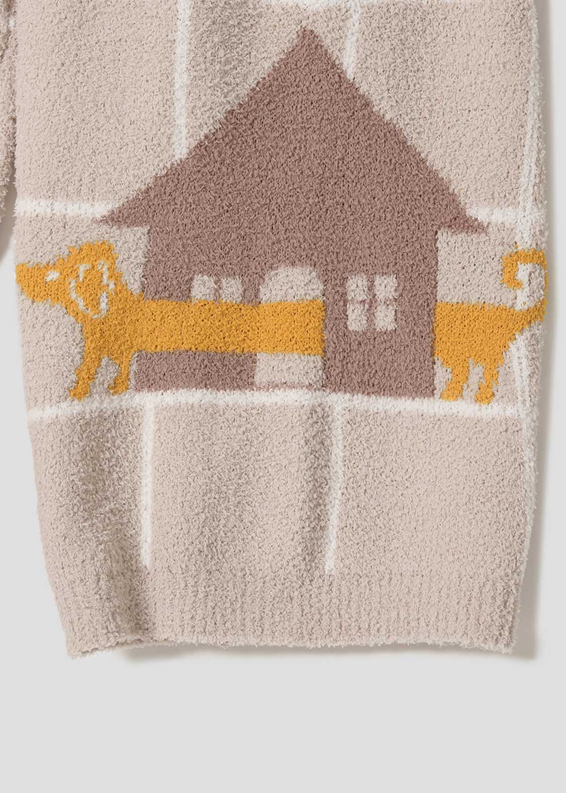 小さなお家と、ナガスギルイヌを組み合わせたデザイン。家よりもながーーいサイズ感だけど、なぜか幸せなナガスギルイヌなのです。