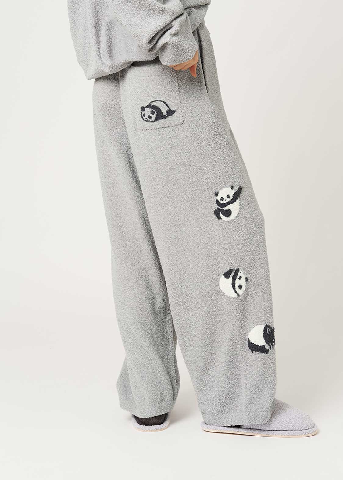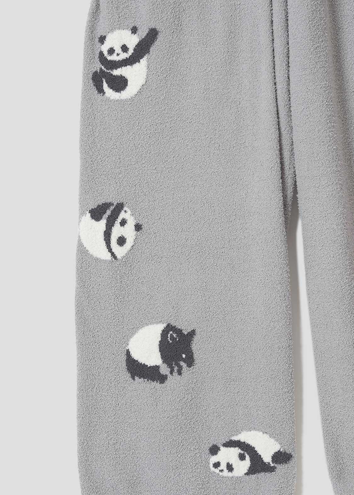 毬のように体を丸めた赤ちゃんパンダが、ころころと転がり落ちていく。その愛らしい姿に思わずほっこり気分になる、キュートなデザインです。