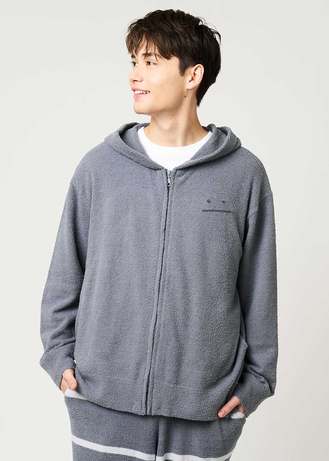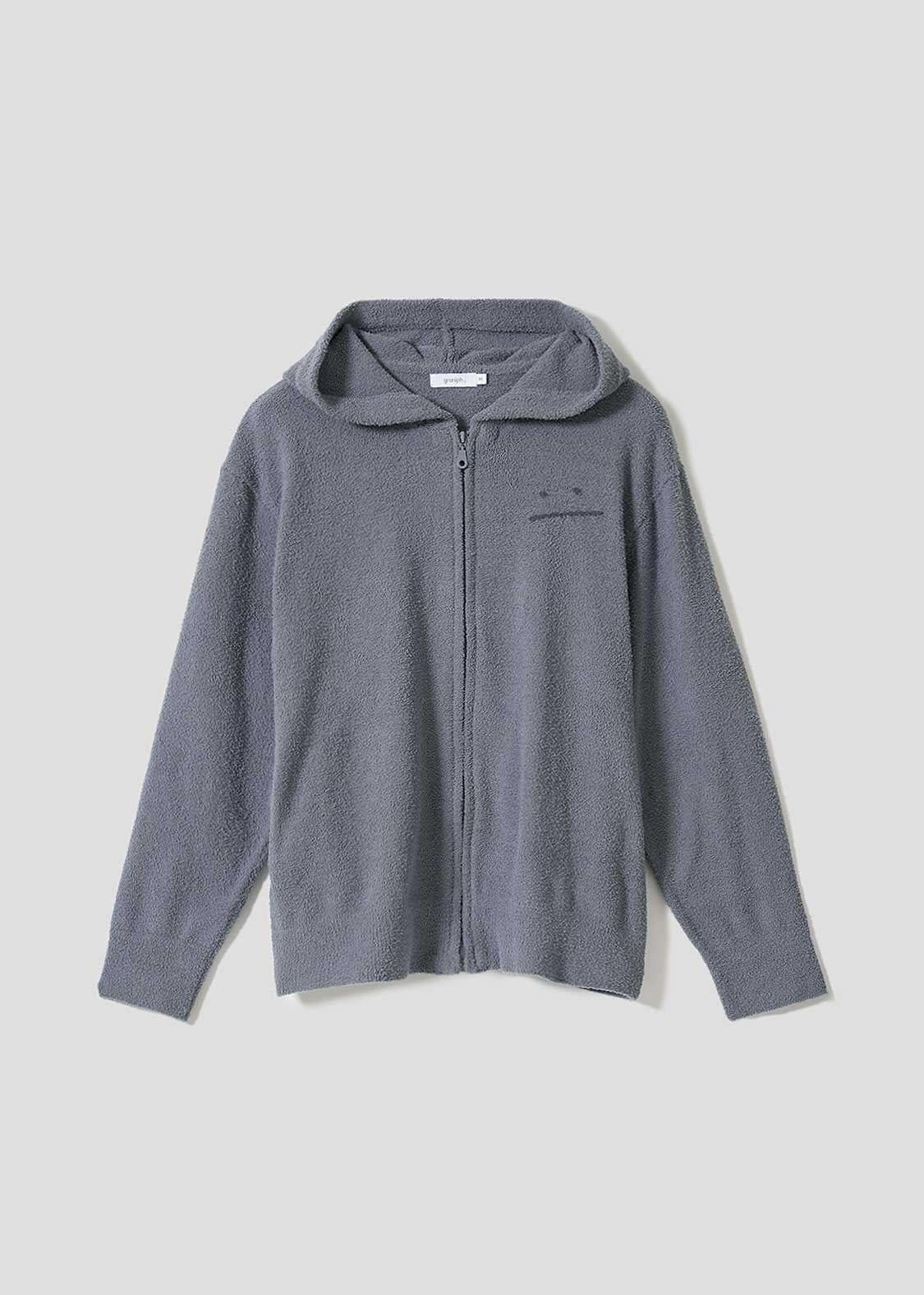 ・ふんわり柔らかな、肌ざわりのよい生地を使用した、ジップパーカー。