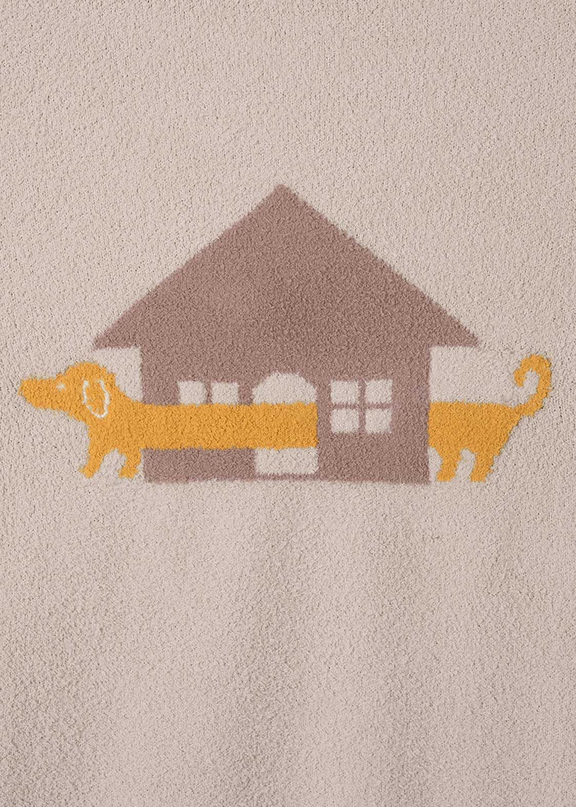小さなお家と、ナガスギルイヌを組み合わせたデザイン。家よりもながーーいサイズ感だけど、なぜか幸せなナガスギルイヌなのです。
