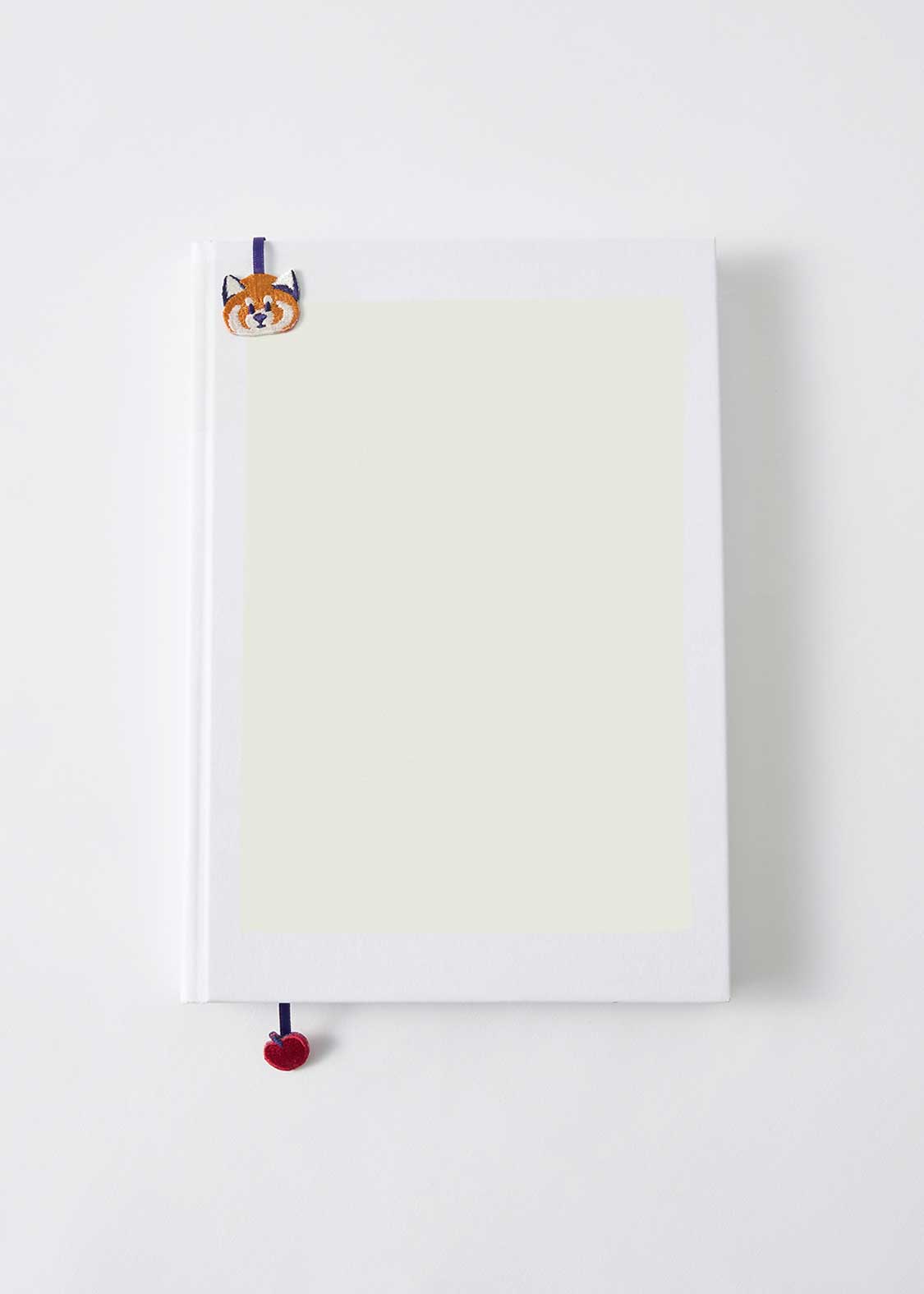 ・手帳やノート、日記帳、読みかけの本につけられる、シールタイプの刺繍チャーム付きしおりです。