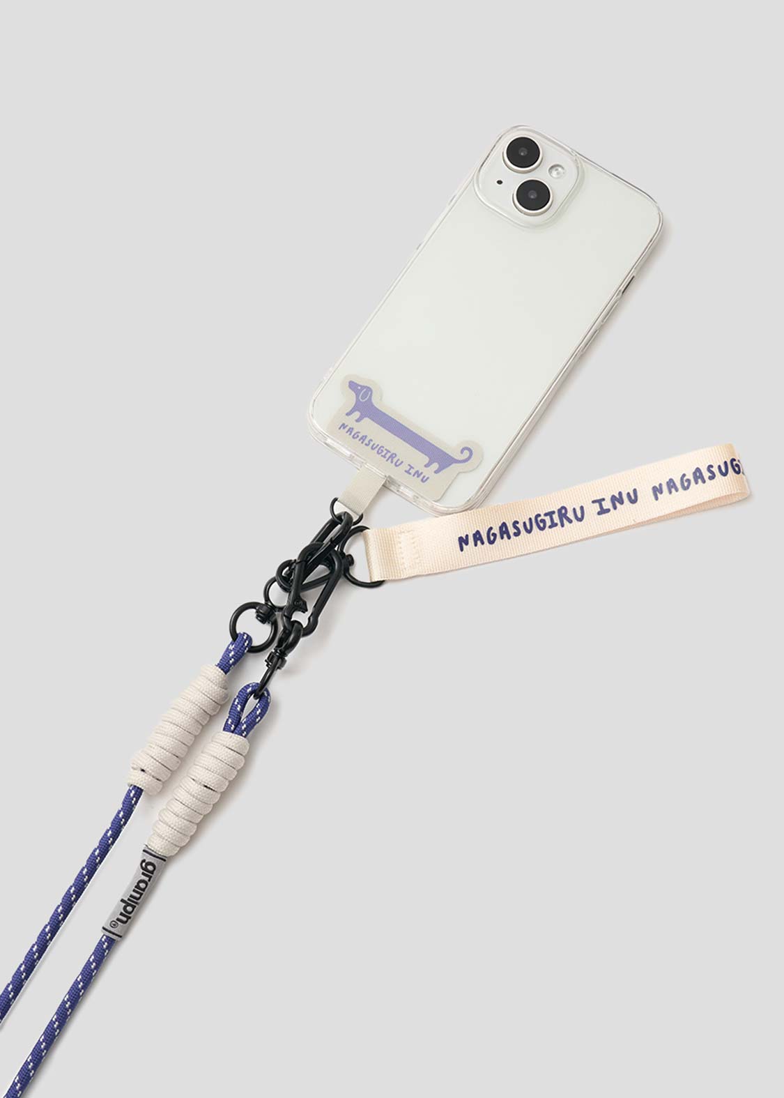 ・ショルダーストラップ、ハンドストラップ、フォンタブの3つが揃ったモバイルストラップ。