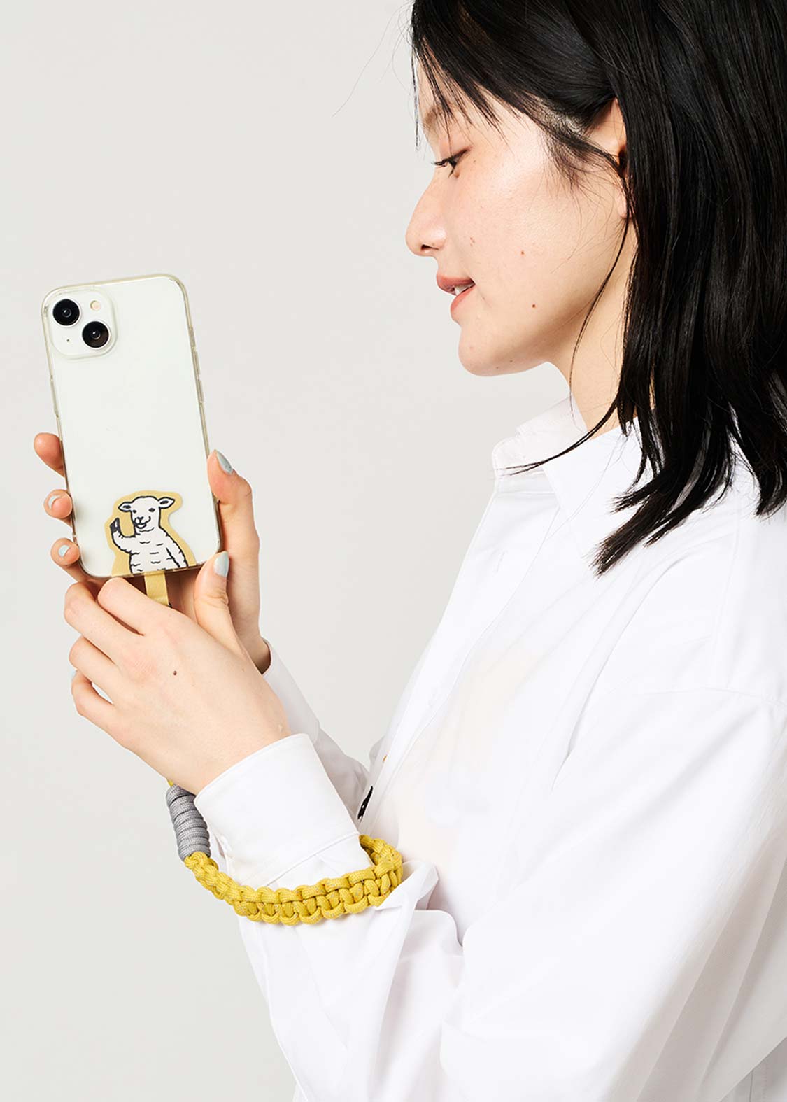 ・手首で短くスマートフォンを支えるハンドストラップ。