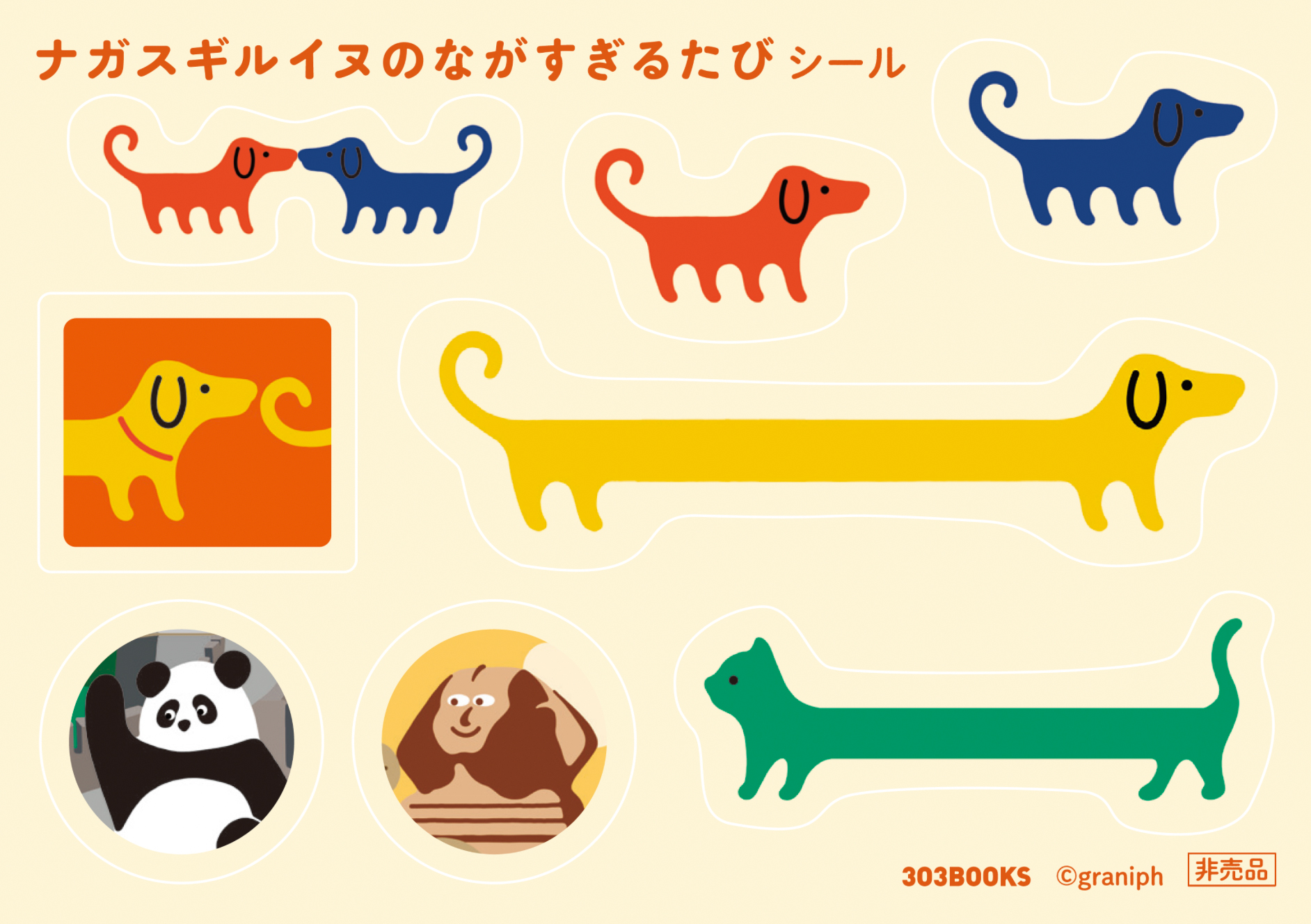 特典ナガスギルイヌのながすぎるたびシールセット『ナガスギルイヌのながすぎるたび』1冊のご購入で「ナガスギルイヌのながすぎるたびシール」一枚を先着でプレゼントします。