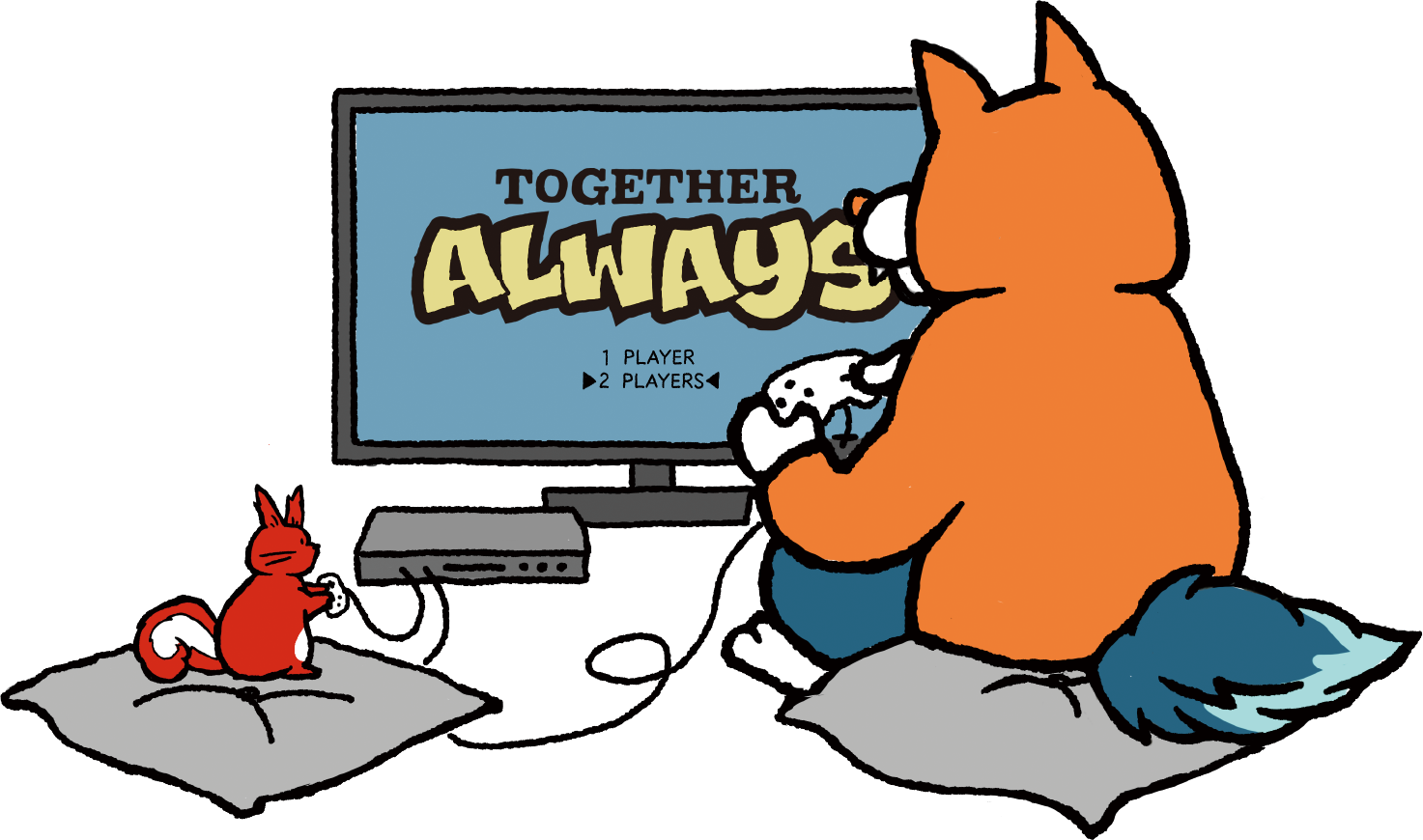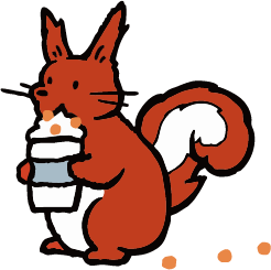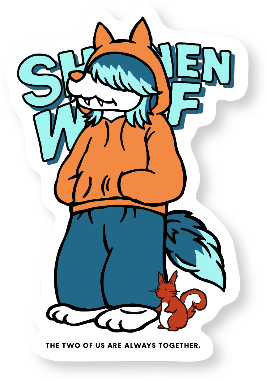 みんなから恐れられるオオカミだけれども、彼はおだやかな好青年。いつも一緒のリスくんとは、公園の木に引っかかっていたところを助けてあげてから大親友に。